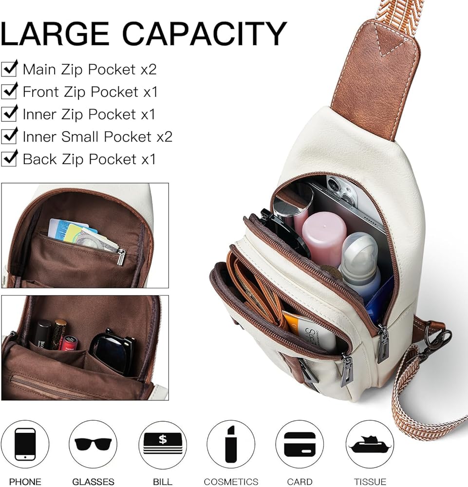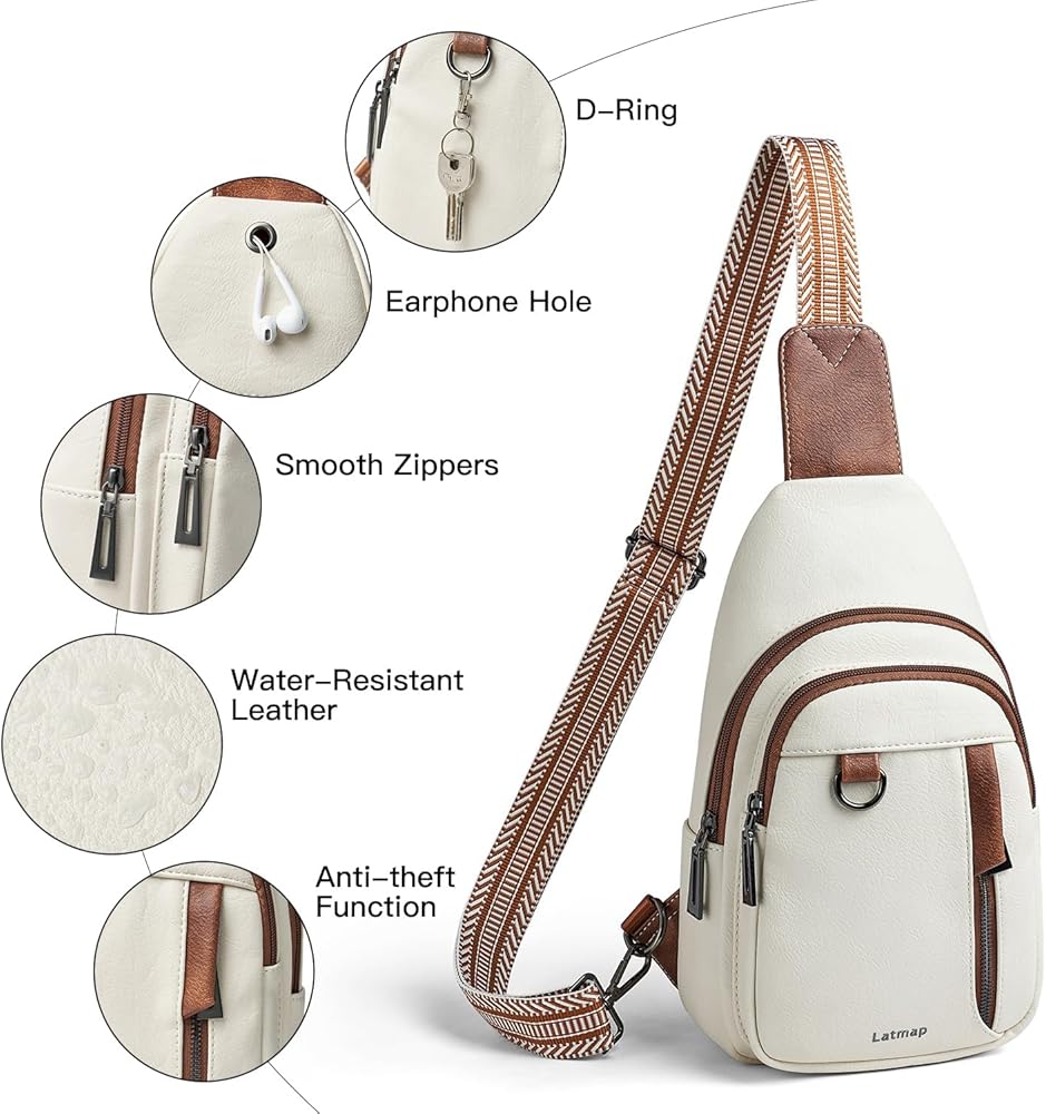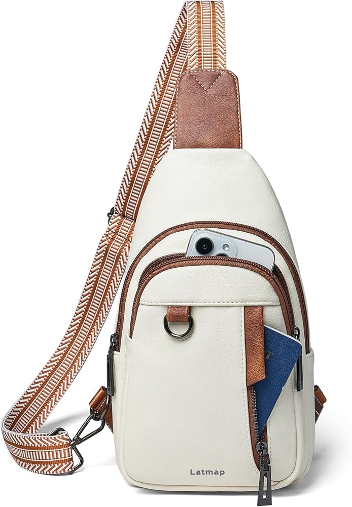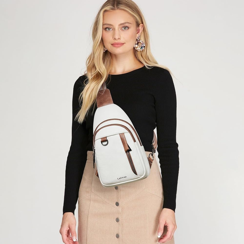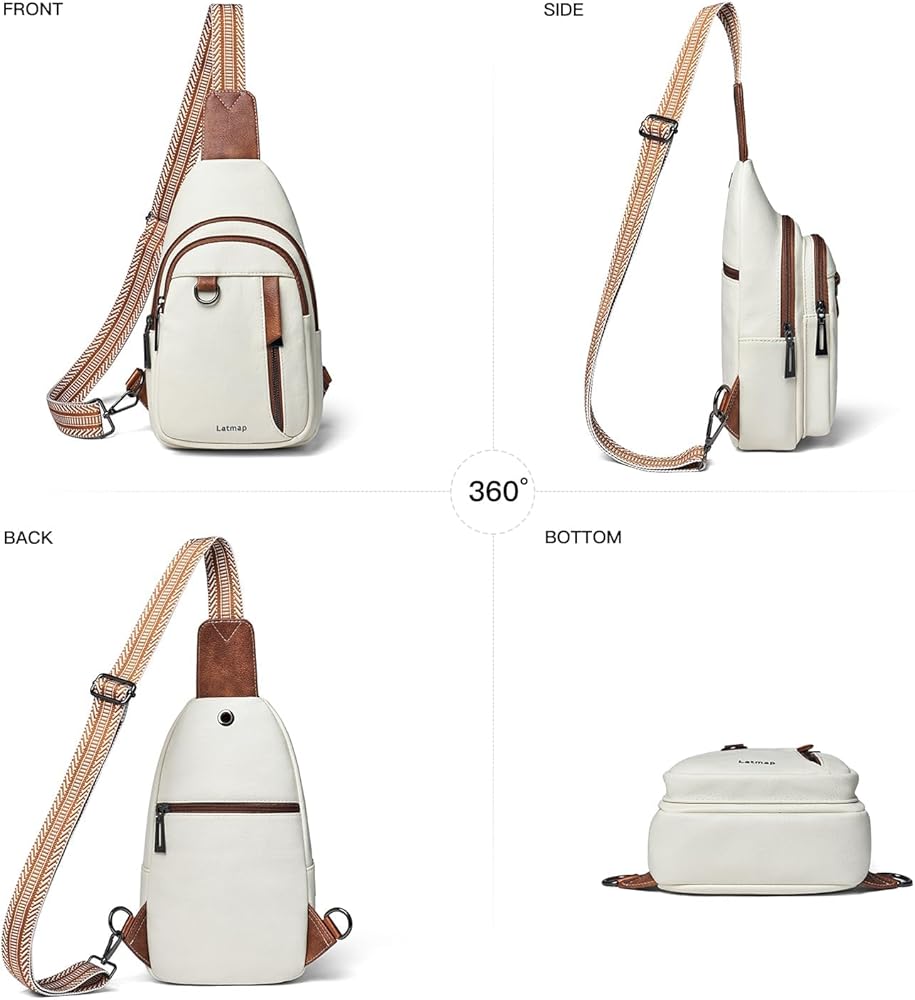 LATMAP Sling Bag for Women Leather Sling Backpack Fanny Pack Crossbody Chest Bag Purse for Travel Hiking Cycling