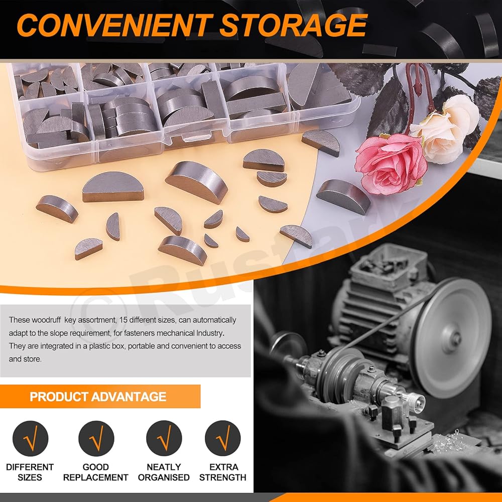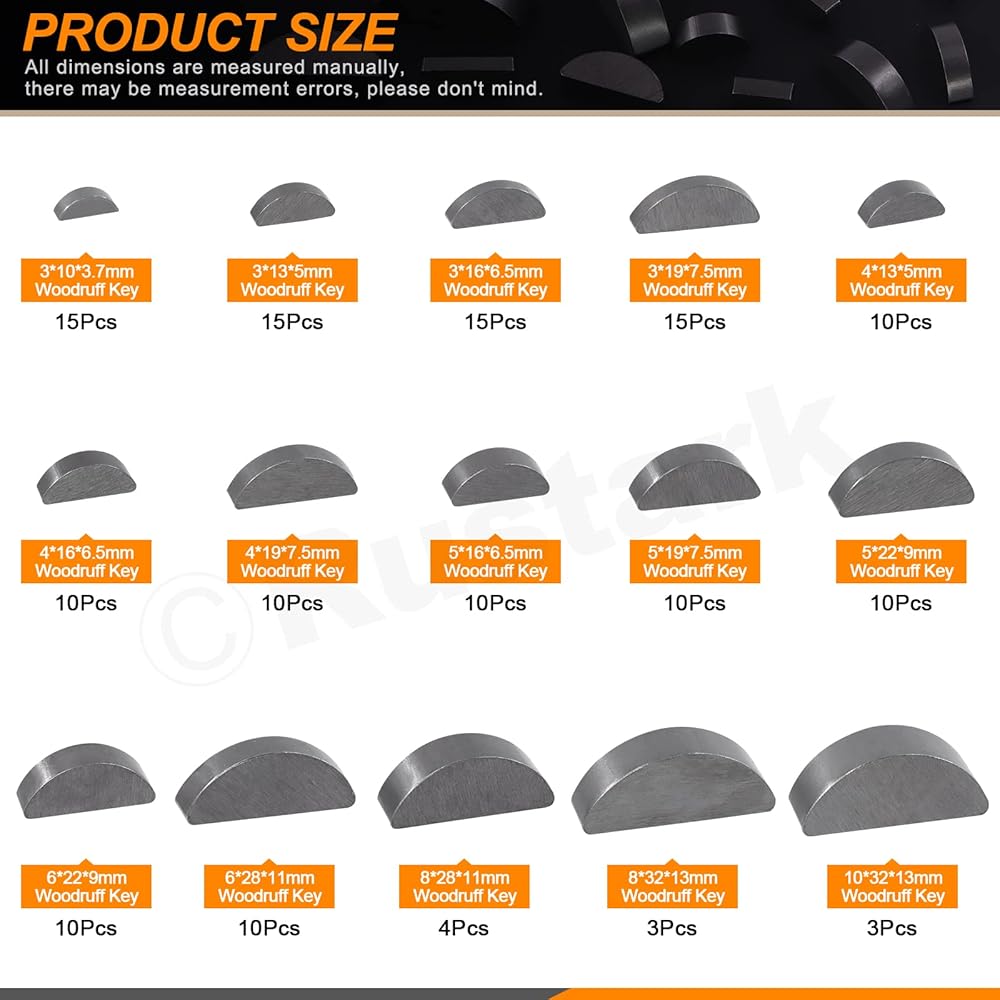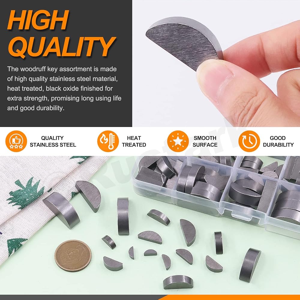 ▶▶Rustark Woodruff Key Stock Assortment Kit Half Moon Semicircle Bond Key Flywheel Key Metric Hardware for Mechanical Industry Use