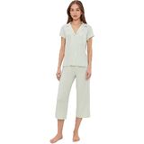 In the mid-2000s, we set out to create the world's softest pajamas for a beautiful night's rest. Gisele delivers, merging a classic men's PJ silhouette with sustainable TENCEL™ Modal fibers. Our luxurious, temperature-regulating knit fabric drapes and falls in all the right ways, enveloping the body in comfort. Plus, it's anti-pilling, machine washable, and gentle on skin, so it not only feels beautiful but it's easy to care for, too. Reach for the cropped set when you want a sharp, polished look or if you prefer an ankle-length pant.