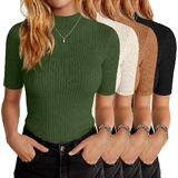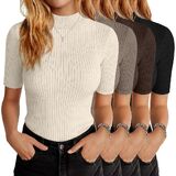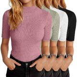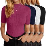 Versatile Style: the women mock neck basic tops pack is designed with a rib knit finish to flatter and enhance your appearance; These ribbed knit business tops allow for ease of styling, be it for a casual or formal setting; Pair it with jeans for a casual look, or a pencil skirt for that professional edge; It's ideal as a slim fit short sleeve work tops or half sleeve casual shirts; The design and style appeal to a broad range of personal styles