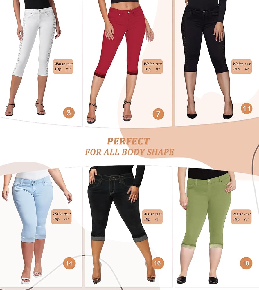MODERN FASHION: The slim fit design of these capri jeans aligns with modern fashion trends, providing a contemporary and chic appearance. They are a popular choice among individuals who seek a fashionable and up-to-date wardrobe.