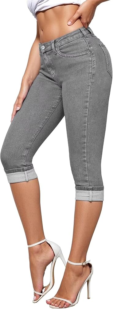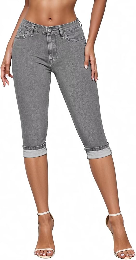 COMFORTABLE STRETCH FABRIC: Women's stretchy slim fit denim capri jeans are designed with a stretchy fabric that provides flexibility and comfort, allowing for ease of movement throughout the day.