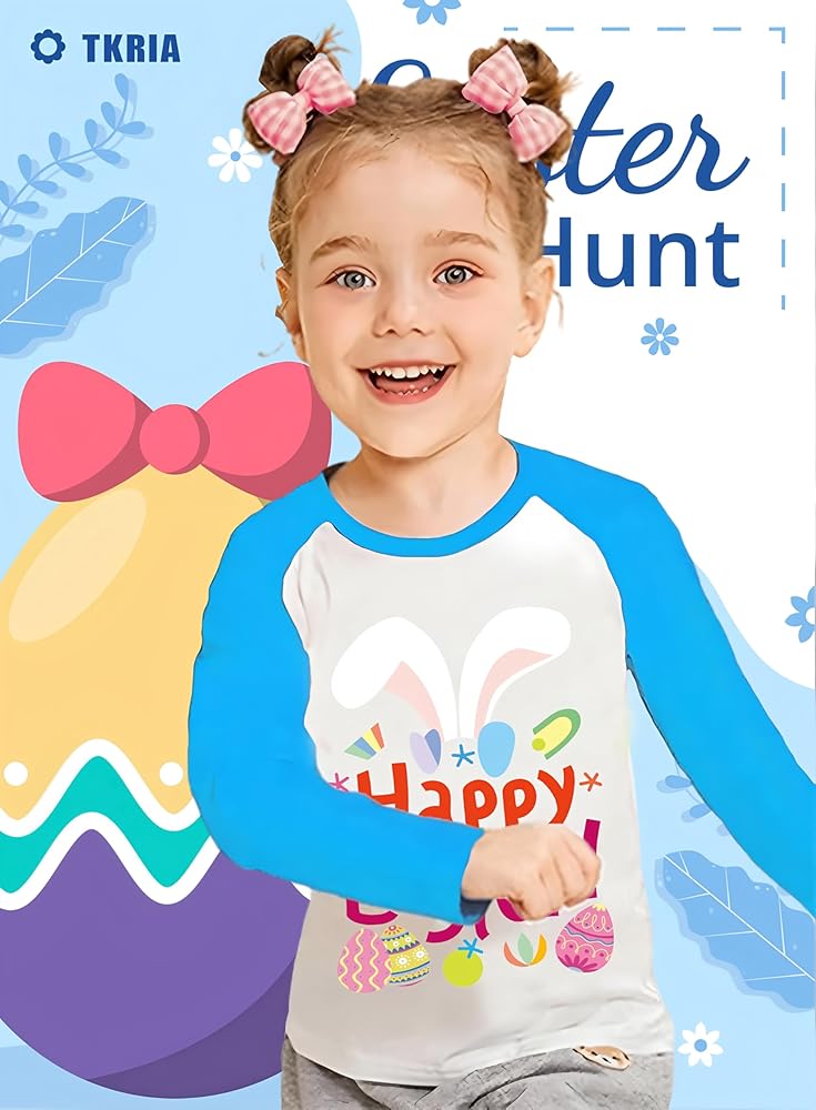 🐰 HIGH QUALITY I New In Easter Day Bunny Eggs Hunt Shirts For Kids, Size 2t-10t. Soft cotton fabric, lightweight and breathable. Good quality on an affordable price assurance, well made and safety. Package includes: Easter Patchwork Raglan Long Sleeve Shirt x 1.