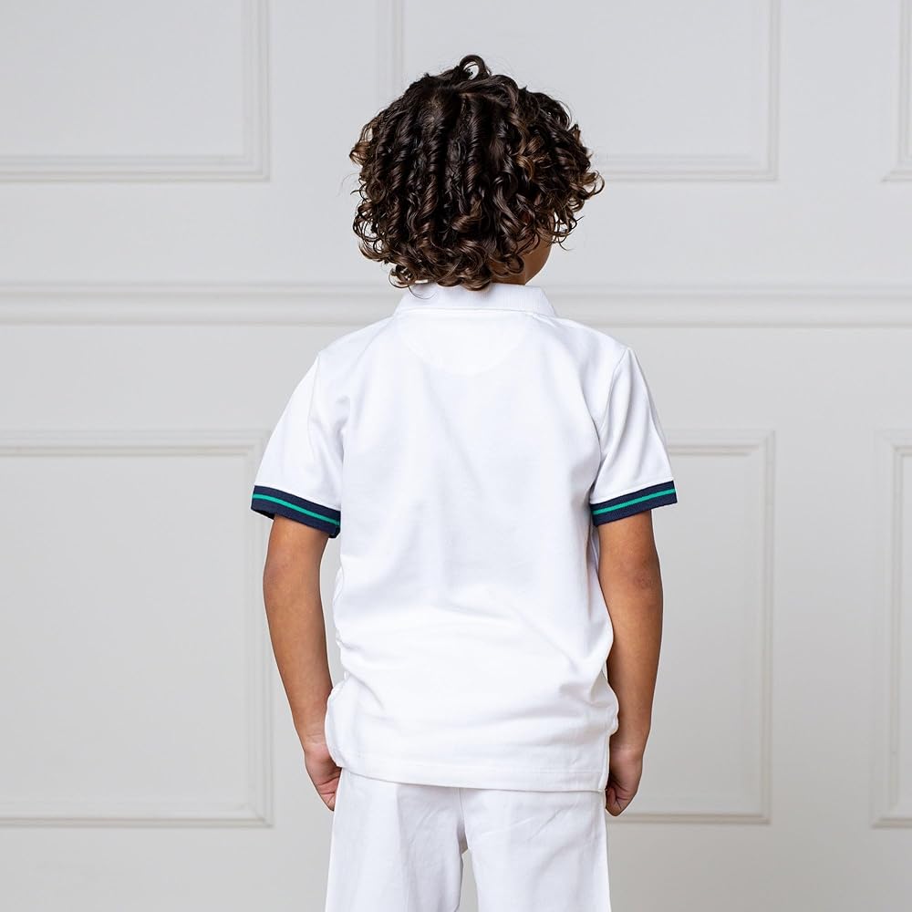 Our take on the classic short sleeve polo features details such as textured knit pique in soft organic cotton, a flat-knit collar, front button placket and side vents. Sure to be a staple in his springtime wardrobe.