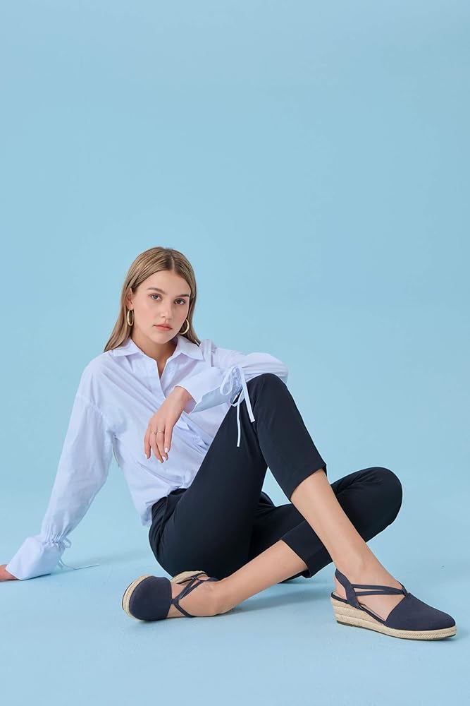 Coutgo Women's Platform Wedge Espadrille Sandals Slingback Slip on Closed Toe Strap Shoes
