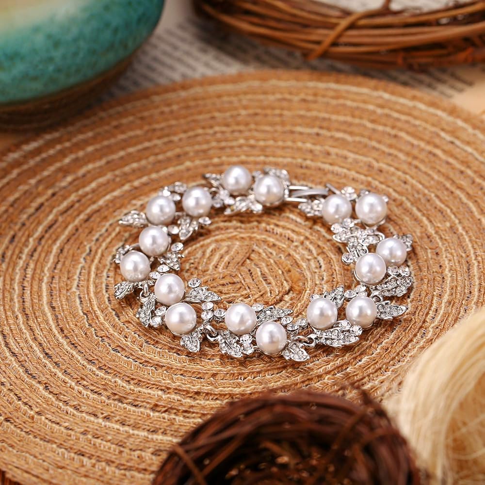 Made of crystals and simulated pearls. Wearing this kind of jewelry will make you more eye-catching.
