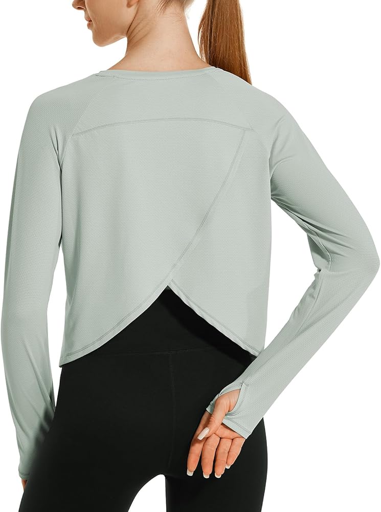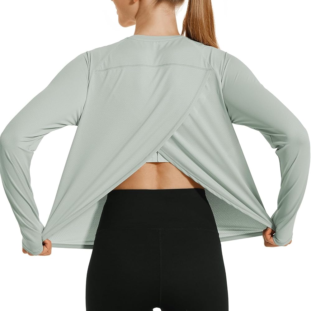 Split Back Yoga Top: Split design of the back, breathable and sweat-wicking long sleeve workout crop tops.