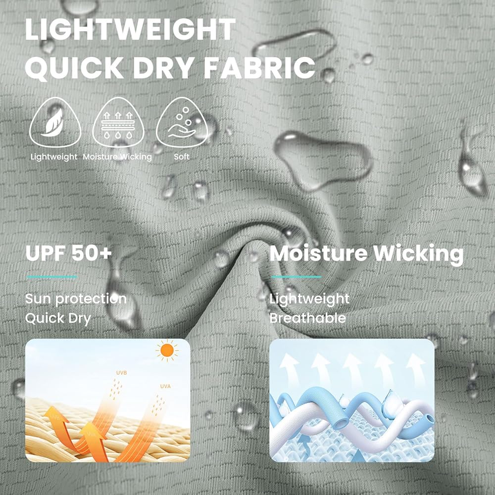 Quick Dry: Lightweight and sun protection fabric wicks moisture away from your skin, loose fit, breathes freely and dries quickly for cool comfort.