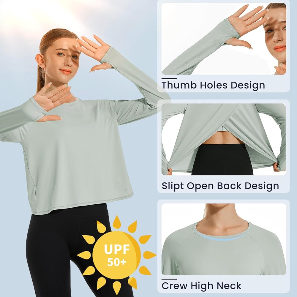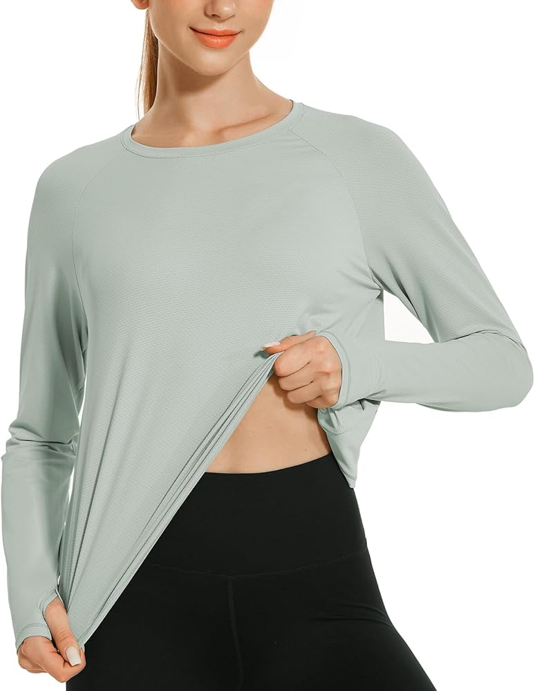 Occasions: This UPF 50+ long sleeve athletic shirt for women has 4-way stretch & non see through fabric, allows you to move freely. It is perfect for workout, swimming,hiking, running, cycling, and any outdoor activities you love.