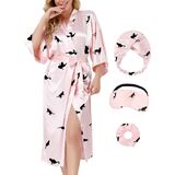 Chic Design: This long robe for women features a thigh-length robe, an open closure with sexy V-neck, and a detachable belt tie around the waist belt loops. We've paired the robe with a delicate eye mask to improve sleep quality and an elastic hair tie and hair band for washing up, a thoughtful combination to enhance comfortable living.