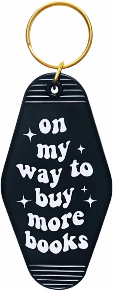This unique keychain features a charming print that proudly states, On my way to buy more books - expressing your love for books in a fun and quirky way.