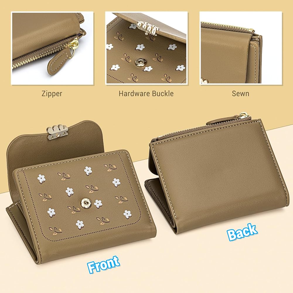 🌼Elegant and Functional: Indulge in the exquisite and functional design of our small wallet for women. Adorned with delicate floral and leaves patterns, this cute wallet exudes femininity and elegance. The addition of two metal flowers on the cover adds a unique touch that sets it apart from ordinary wallets. This women's wallet is made from premium PU leather to ensure exceptional quality and durability, guaranteeing a long-lasting companion that withstands the test of time.