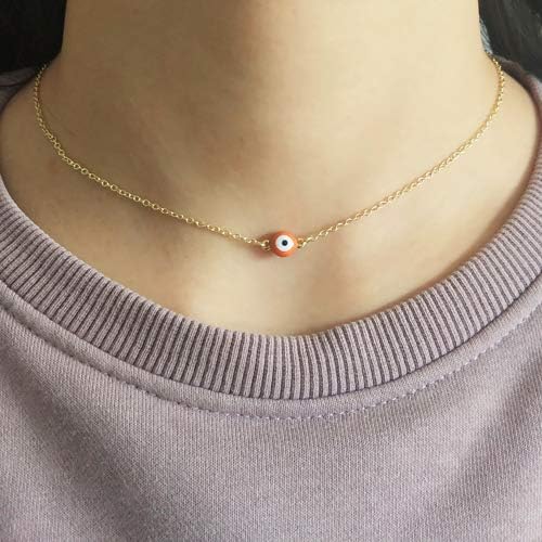 Overlay Evil Eye Necklace:Elegant and unique necklace is a perfect gift for womens,14K Gold Plated over high quality brass.Lead and nickel free,Not faded.