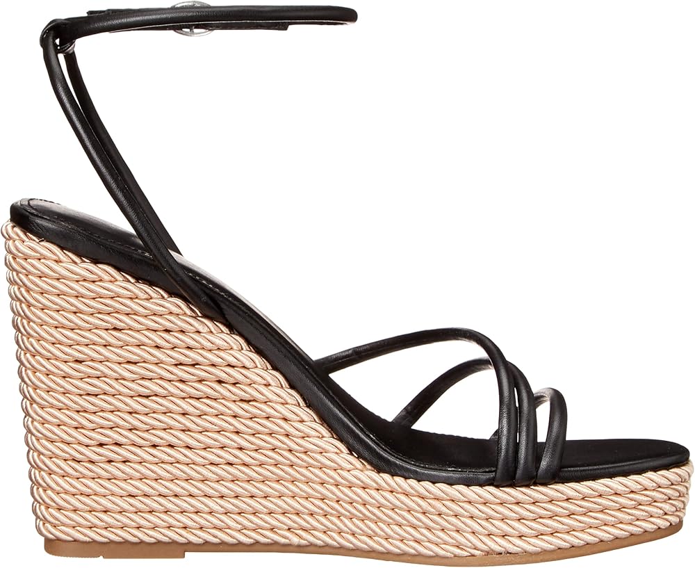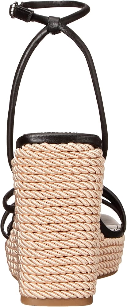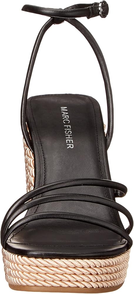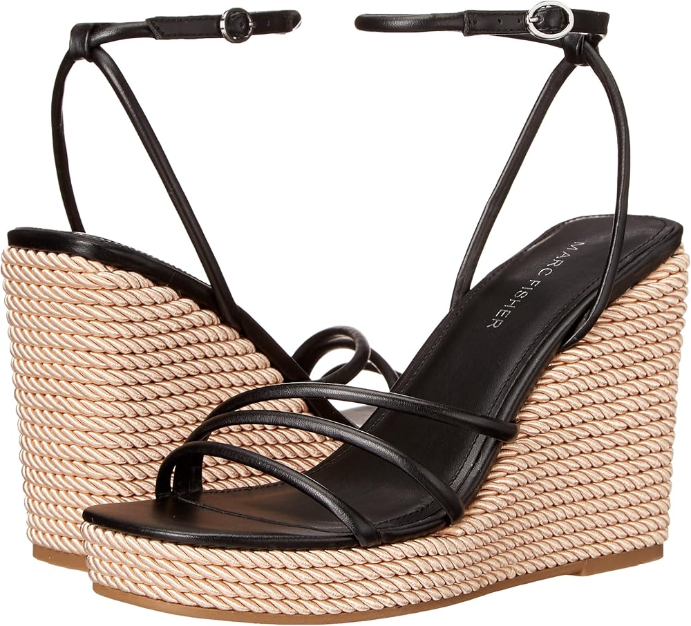 The Marc Fisher Zeki platform wedge sandal is a warm weather must have. The trendy tubular straps are paired with an adjustable ankle strap, and the ultra high wedge is wrapped with twisted rope detailing.