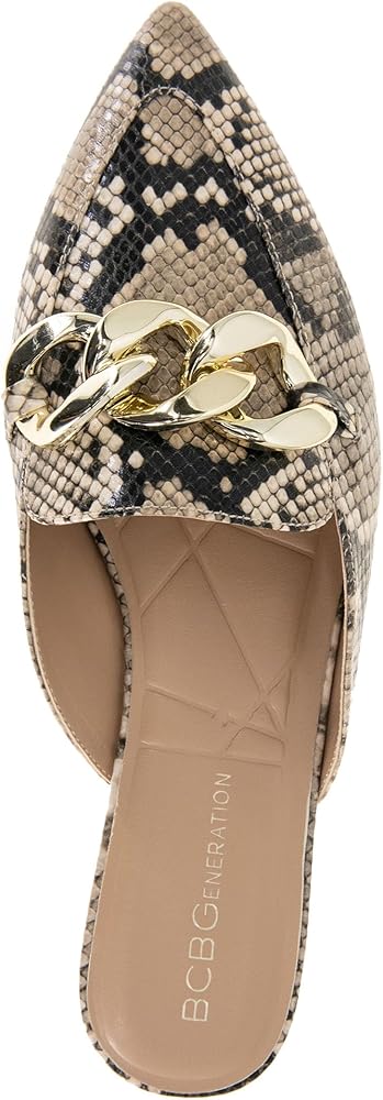 BCBGeneration pointed toe mule with tonal oversized chain.