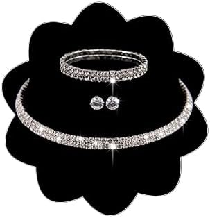 wekicici Bridal Necklace Earrings Set Simple Multilayer Necklace Bride Wedding Set Rhinestone Necklace Choker Bracelet Dangle Earrings Accessories for Women