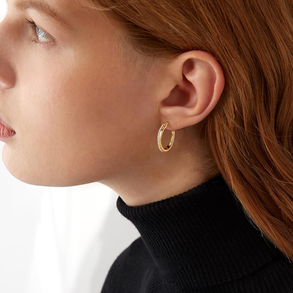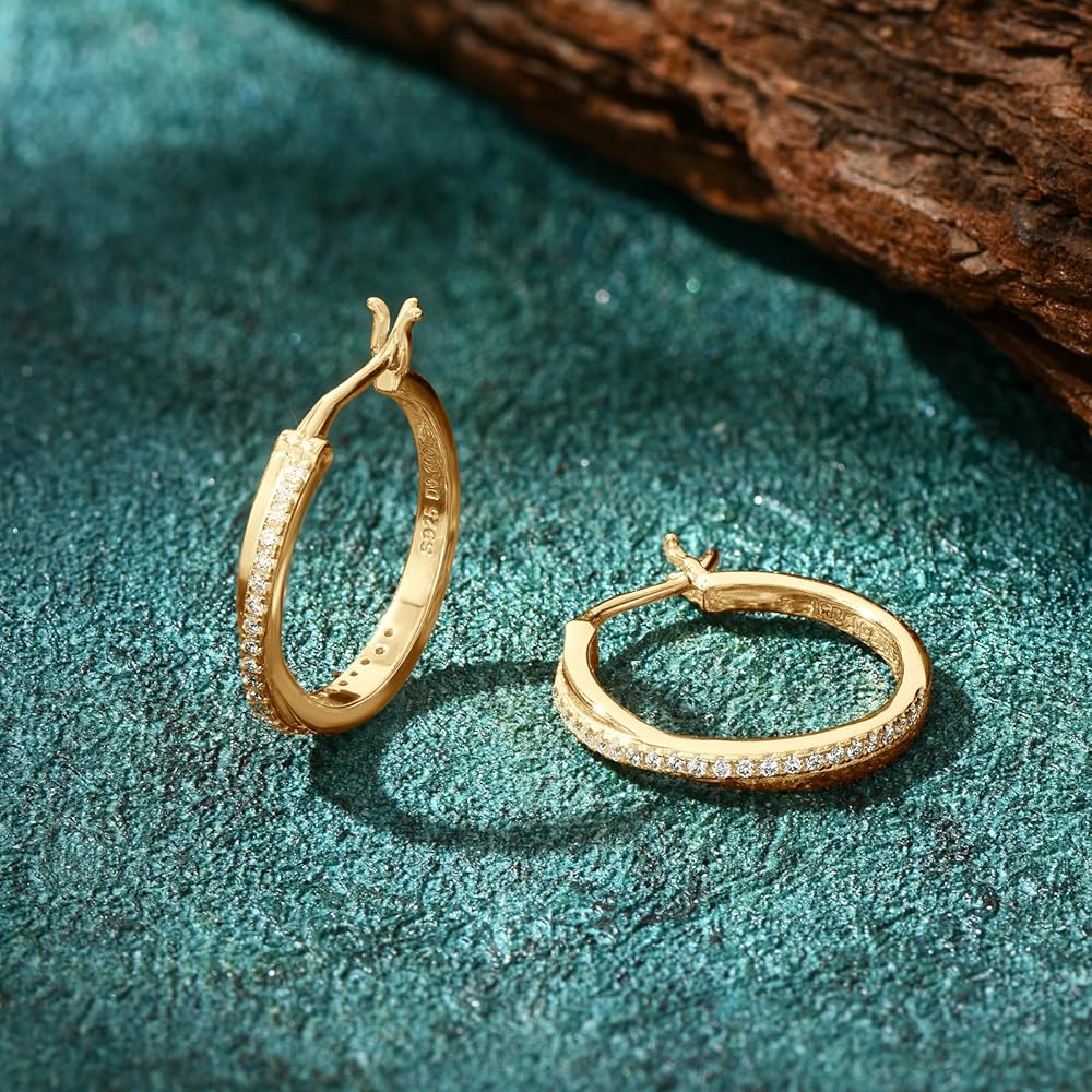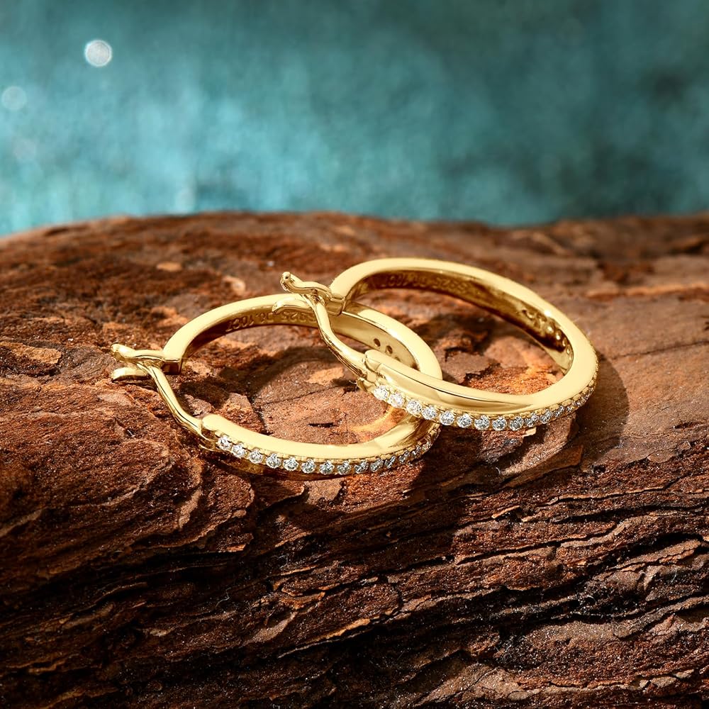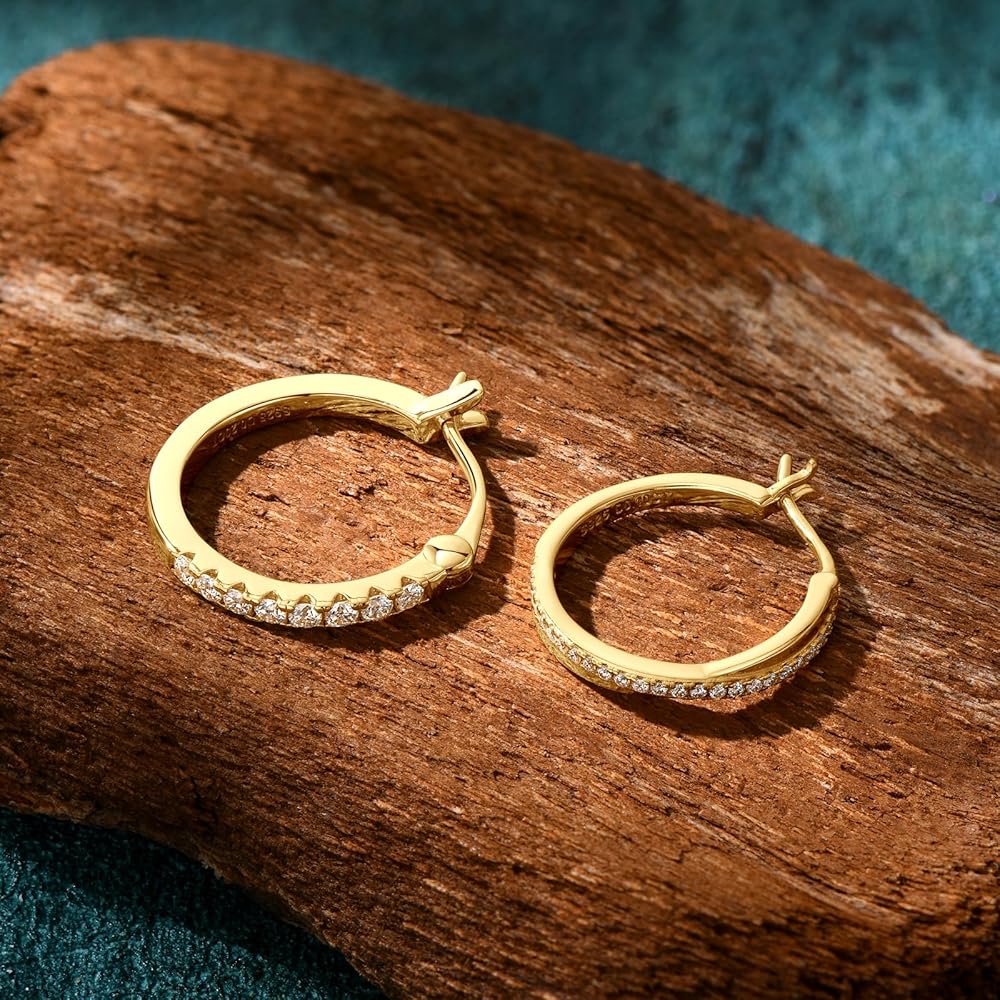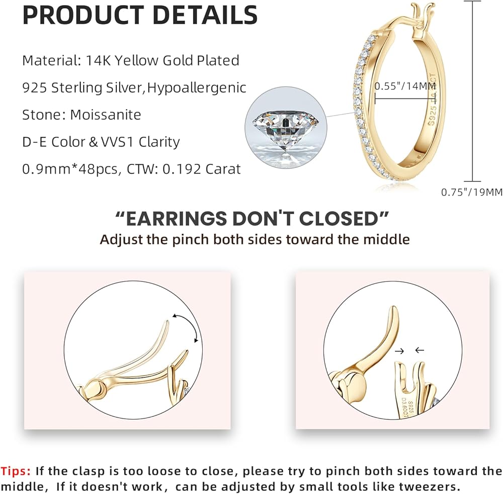 Sparkling moissanite stones: The earrings are adorned with 0.4 carat (1.8mm*16pcs) moissanite stones that sparkle and shine, providing a luxurious and radiant look. Diameter of the huggie earrings : 19mm.