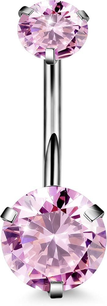 PRODUCT SIZE--The Gauge of the Belly Piercing Jewelry is 14G(1.6mm); 6 Bar Length for You to Choose from: 6mm(For Stretched Navel), 8mm, 10mm(Common Belly Piercing Size), 12mm, 14mm(Healing Belly Button Ring), 16mm; Top CZ Size: 5mm And Button CZ Size: 8mm.