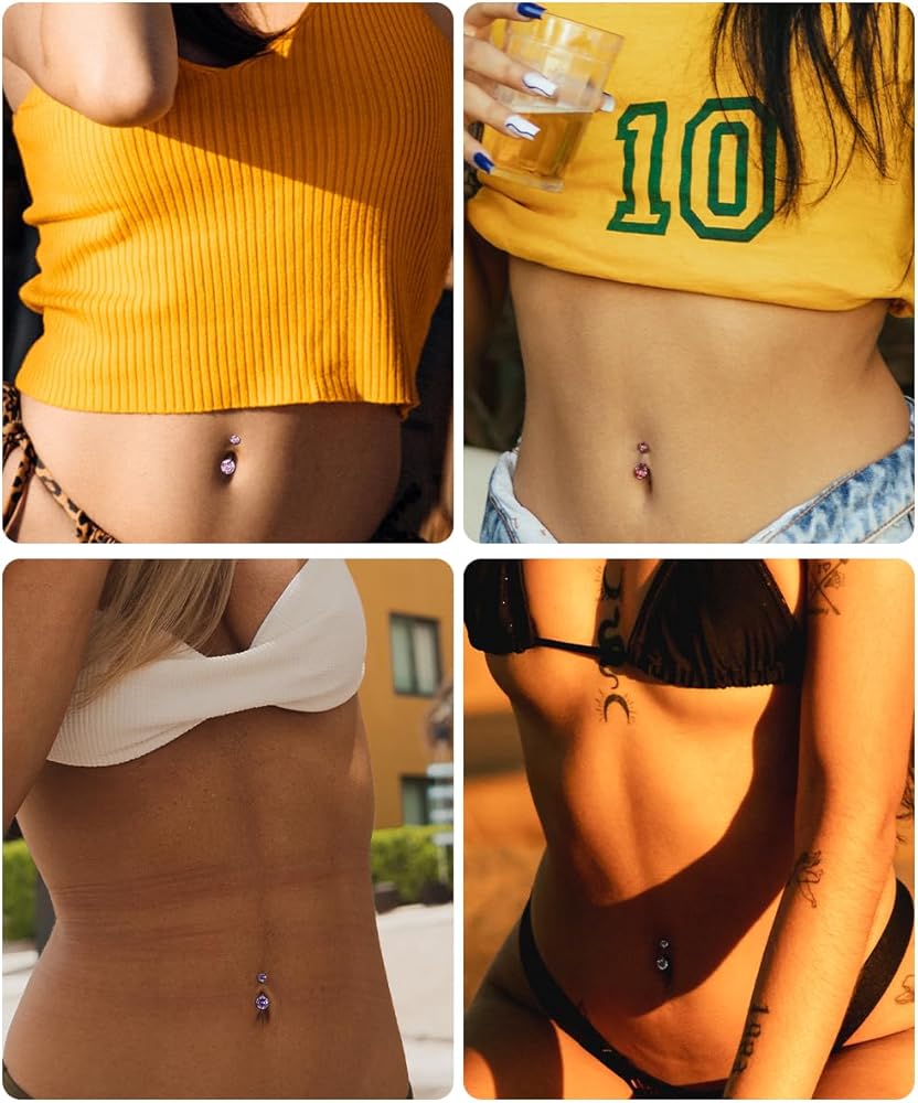 HYPOALLERGENIC MATERIAL--Our Titanium Navel Rings are Not Only Fashionable, But Also Safe to Your Body. Hypoallergenic and Durable, It Offers a Comfortable Fit and Minimizes the Possibility of Irritation. It also Inlaid Shiny AAA+ Cubic Zironia, Adding a Touch of Elegance to the Ring.