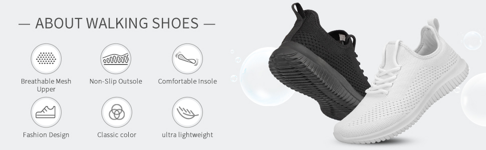 Breathable knitted mesh upper: Sneakers for women are made of a one-piece knitted upper with thousands of holes on it. It is lightweight and breathable, can keep your feet dry and has an excellent experience.