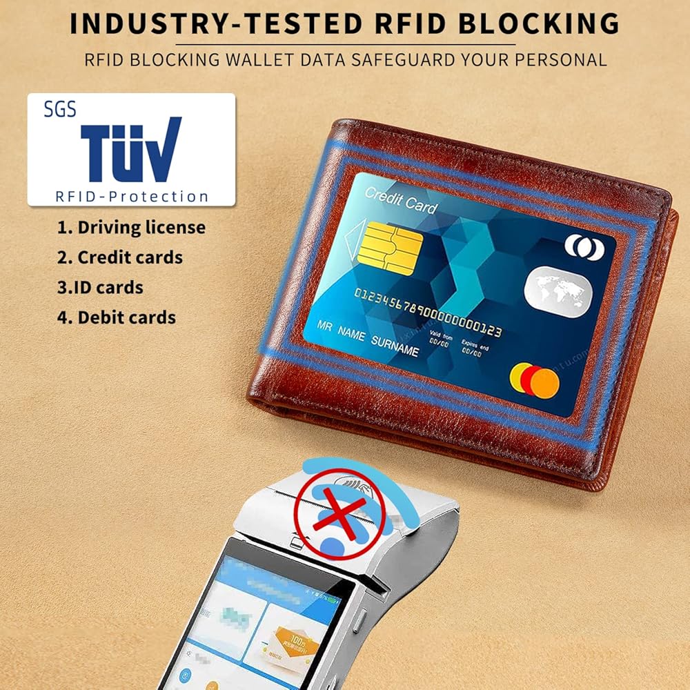 𝐒𝐀𝐅𝐄𝐓𝐘.𝐏𝐑𝐈𝐕𝐀𝐂𝐘.𝐒𝐄𝐂𝐔𝐑𝐈𝐓𝐘 - this slim wallet for men is equipped with German institute certified RFID SECURE Technology, a unique metal composite, engineered specifically to block 13.56 MHz or higher RFID signals and protect the valuable information stored on RFID chips from unauthorized scans.