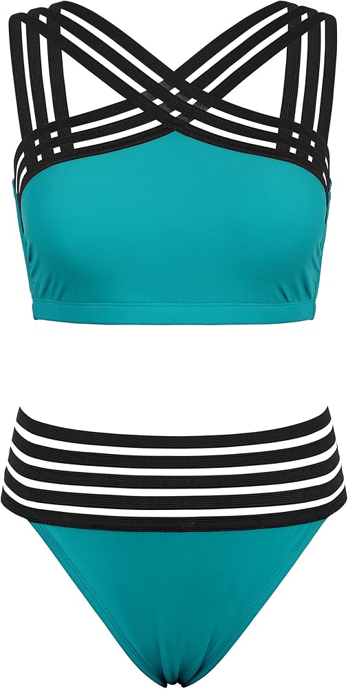- Two piece swimsuit includes criss-cross bikini top and high waisted bikini bottom , moderate bottom cut modifies the leg line and makes you comfy