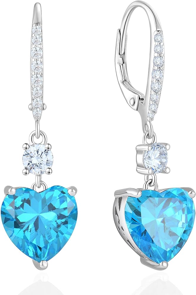 VESITIM Design:beautiful heart birthstone dangle earrings,classical design add a touch of elegance and sentimental value to any outfit. Perfect for gifting to someone special or as a personal accessory