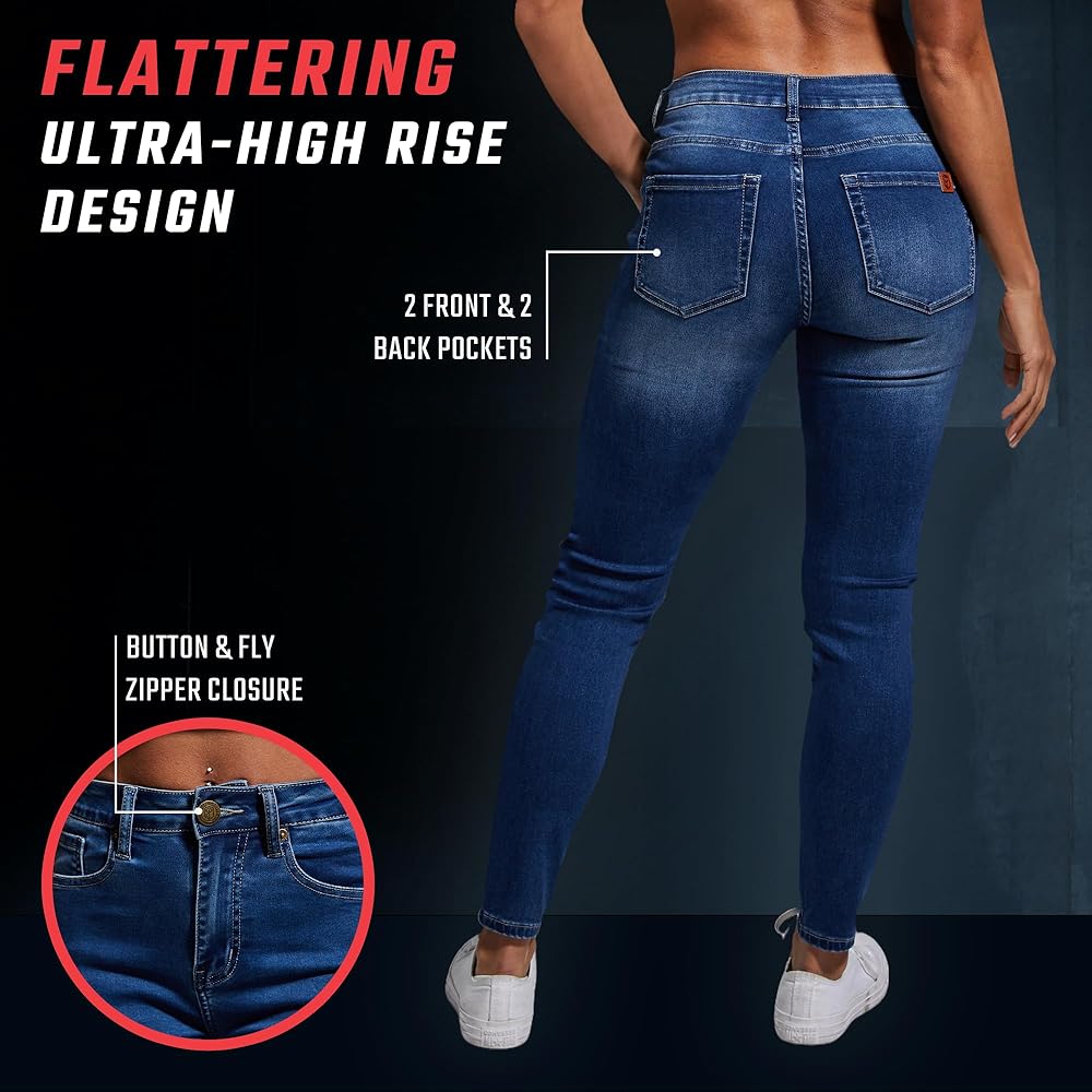 ULTRA-HIGH RISE DESIGN - These jeans for women feature an ultra-high rise design, perfect for the athletic woman. The design hugs your quads and glutes, without any waist gap, making them flattering and comfortable to wear.