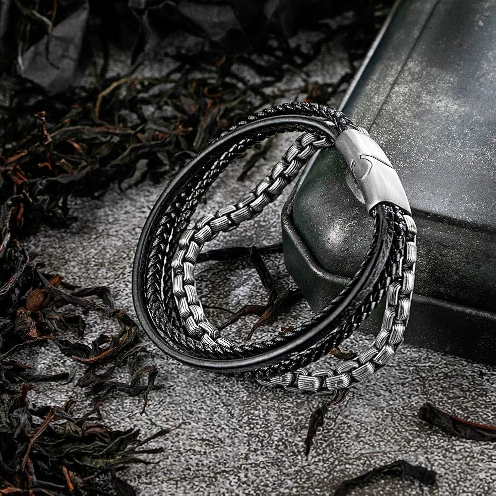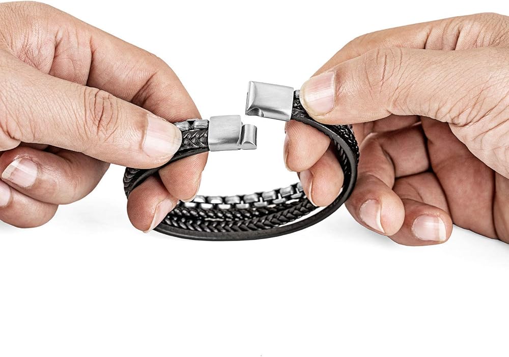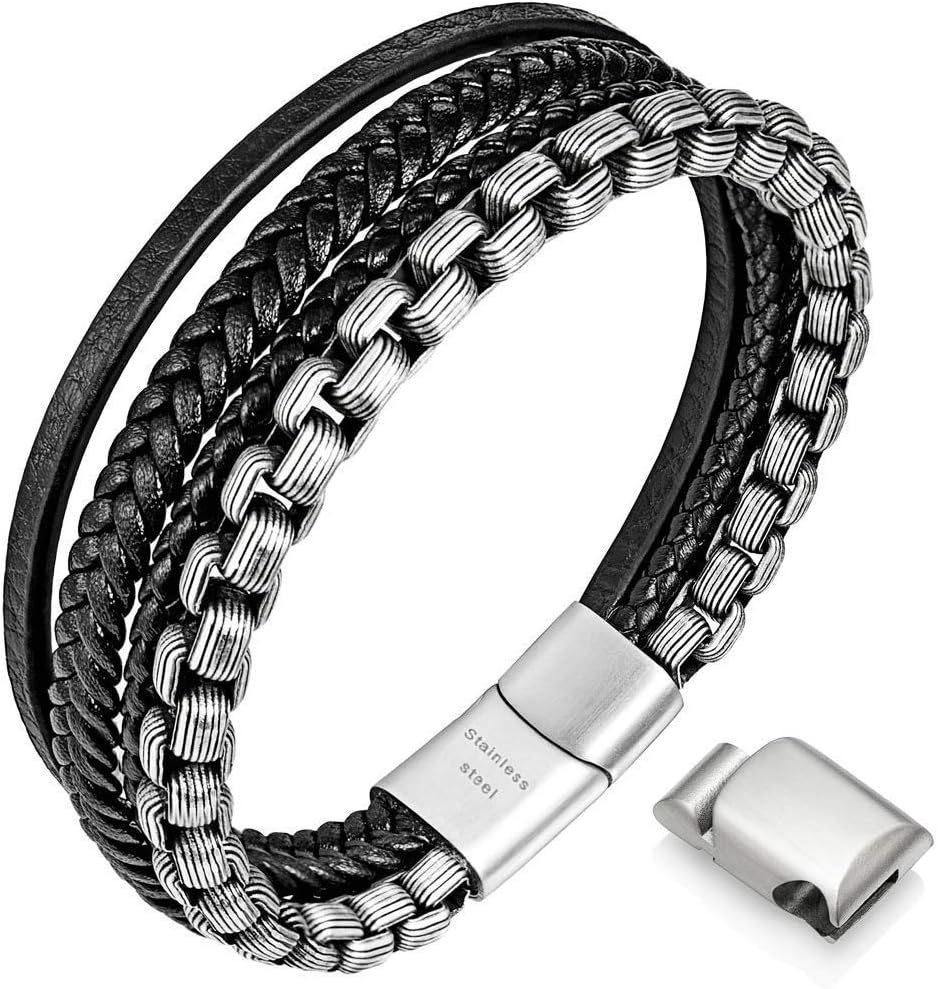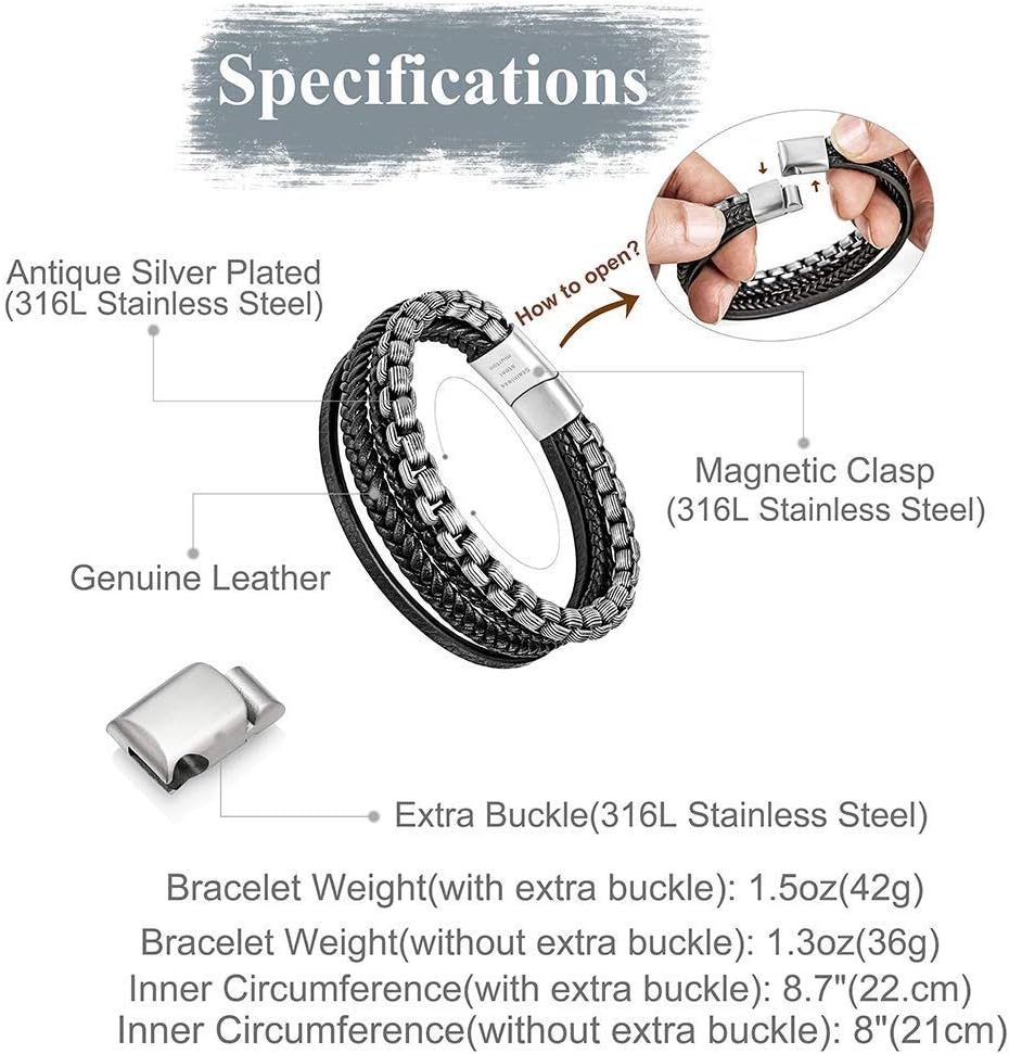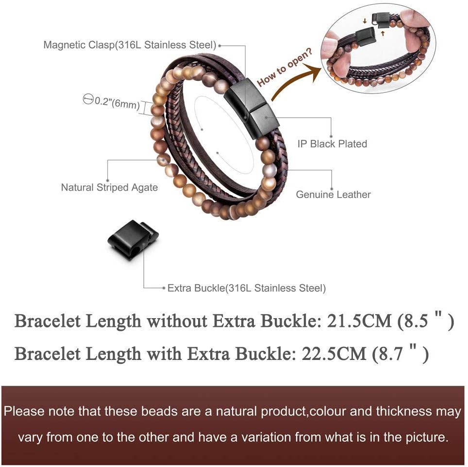 Style:The multi-layer leather is woven into this nice bracelet, natural beads or stainless steel chains, making our bracelet very unique; ending with a stainless steel magnetic clasp makes this bracelet very durable and does not need to worry about breaking