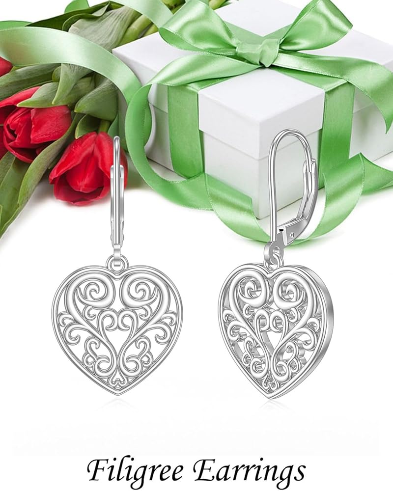 ❤【S925 Silver Jewelry Gifts】Packaged in a gifts box- Perfect for giving or safekeeping. Earship filigree heart earrings are the best purchase for Valentine's Day, Anniversary, Mother's Day, Thanksgiving Day, Graduation, and Birthday gifts for your wife,girlfriends,fiancée,mother,daughter,friend, sister,mother in law and grandmother.Suitable for daily and various party occasions.