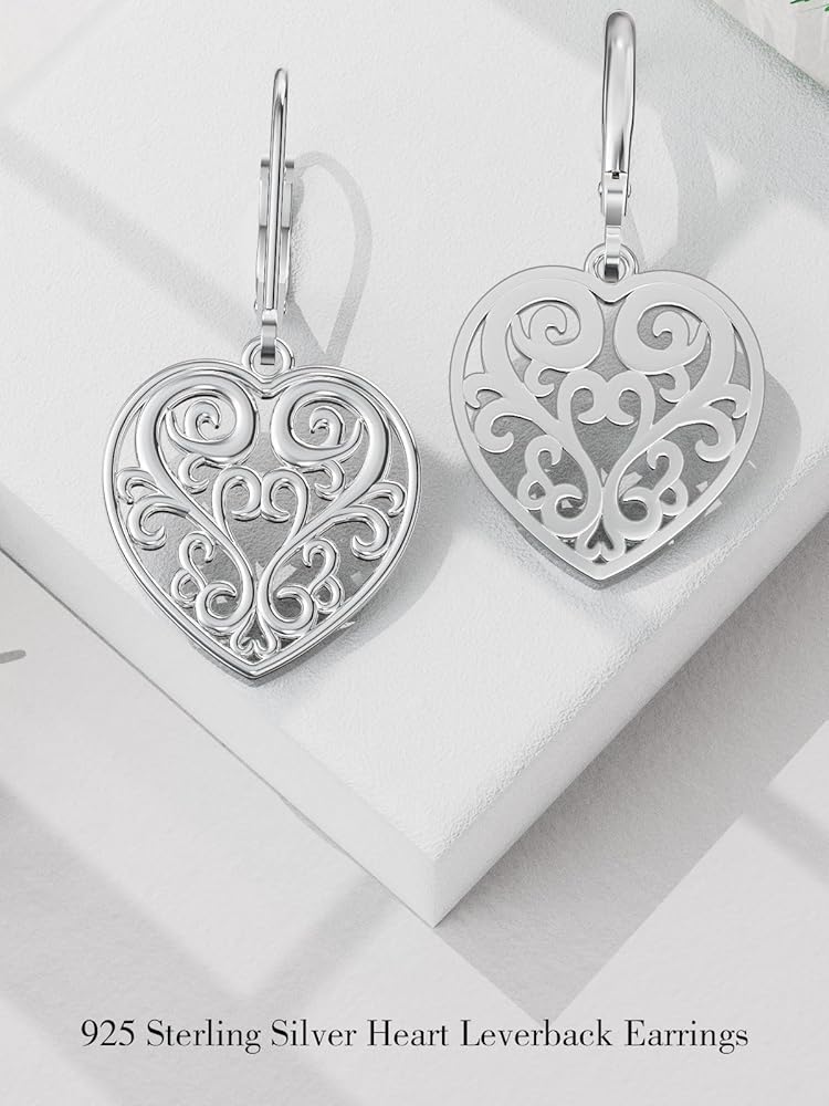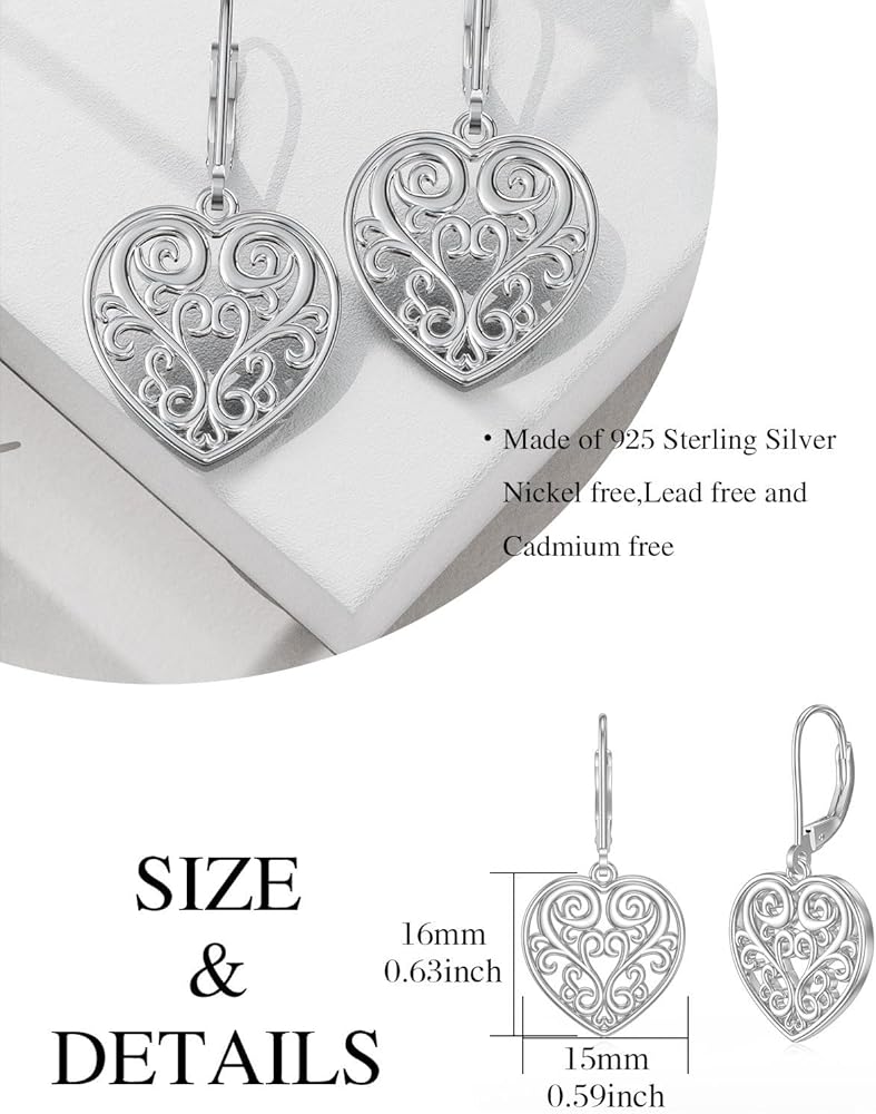 ❤【Filigree Earrings Size】The heart dangle:0.63inch*0.59inch/16mm*15mm.Leverback design make sure earrings long-time wear and not easy to slide off your ears.