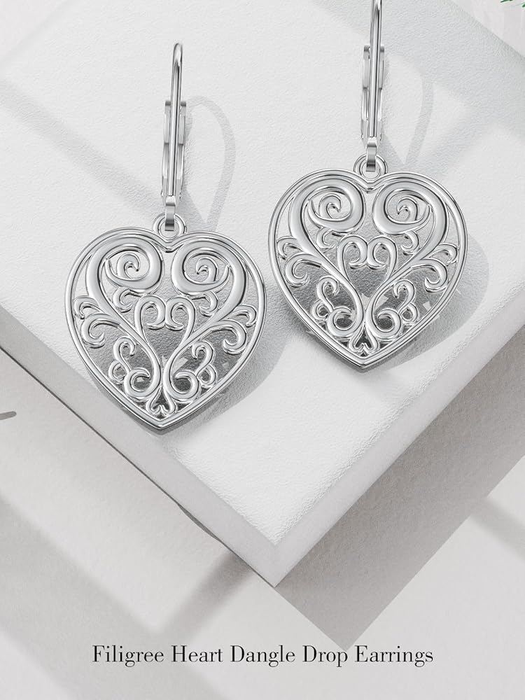 ❤【Heart Filigree Earrings inspiration】This women earrings featuring filigree heart.Filigree doesn't have a start or finish,and it's a looped pattern that goes on infinitely. Which symbolizes the eternity of love.It is a perfect gift to express I love you.