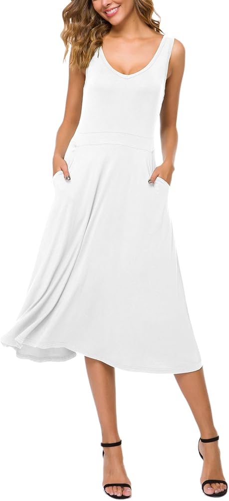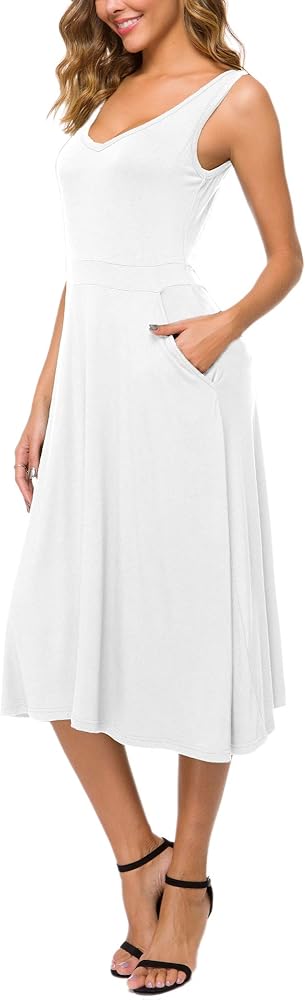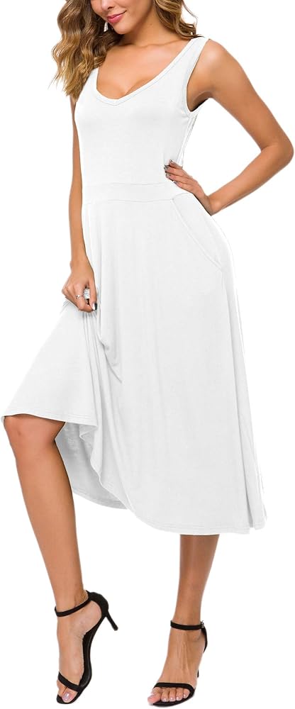 - Features sleeveless,pockets,flare skirt bottom and unique neckline