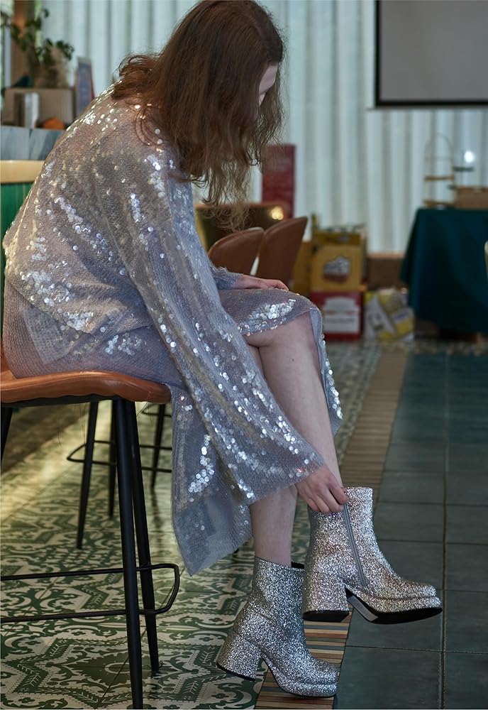 Applicable Scenes and Matching: Sequin flat boots are versatile and stylish, matching well with summer shorts, sexy and cute skirts, or elegant long skirts. From work to parties, shopping, weddings, dates, and even dances, they perfectly showcase your charming allure.