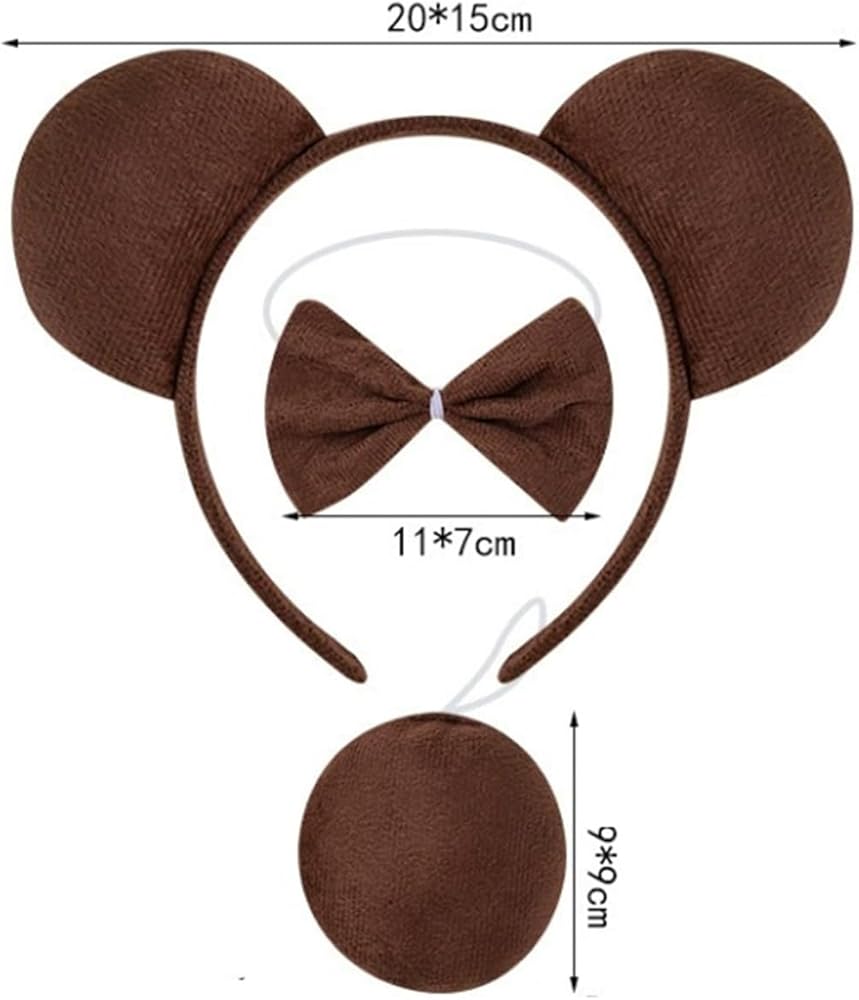 • Approximately Dimensions: Bowtie: 4.9"x3.7"; Tail length: 13"; Ears Headband length: 13"-13.7". Great costume set for themed birthday parties, Halloween, Christmas, Easter and New Years Eve