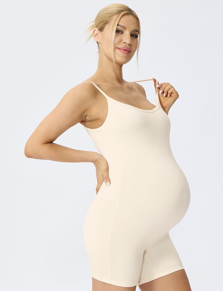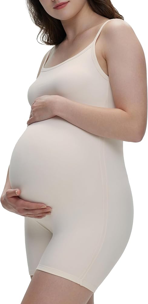 【DESIGN FEATURES】 Maternity jumpsuit shorts hug your belly to highlight the body curves,while the proportion of the individual's body is well expressed.Pregnancy spaghetti strap camisole leotard design can be slender neck, sexy collarbone, rounded shoulders to maximize the show, adding sex charm, enhance the beauty of motherhood.
