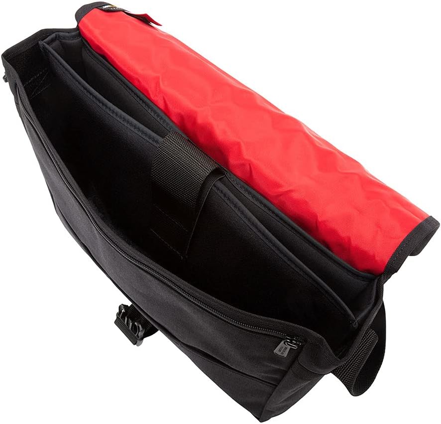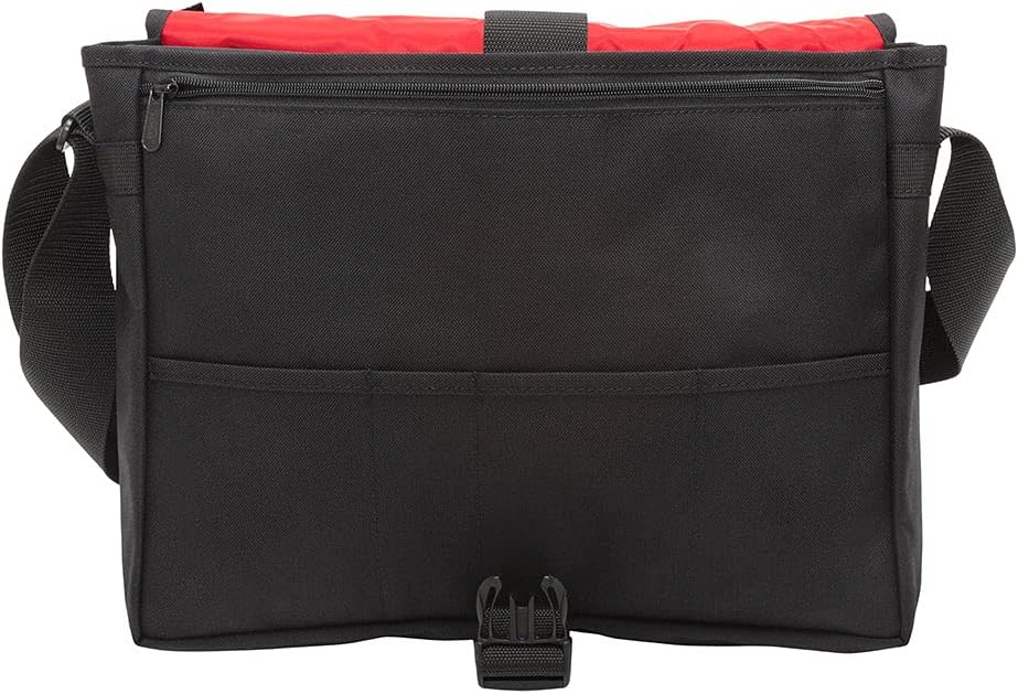 One large zippered pocket and four small open pockets underneath the flap for all of your computer accessories