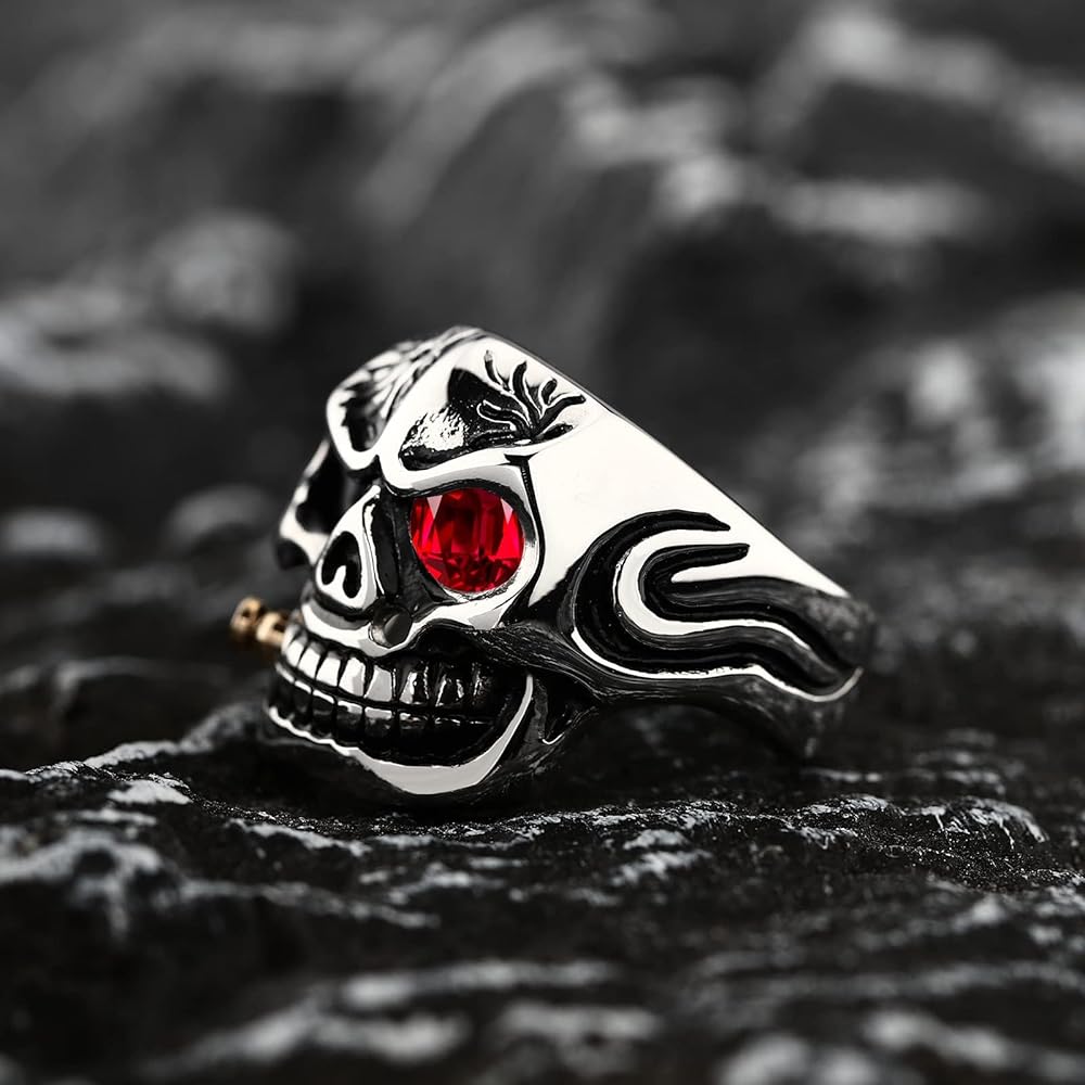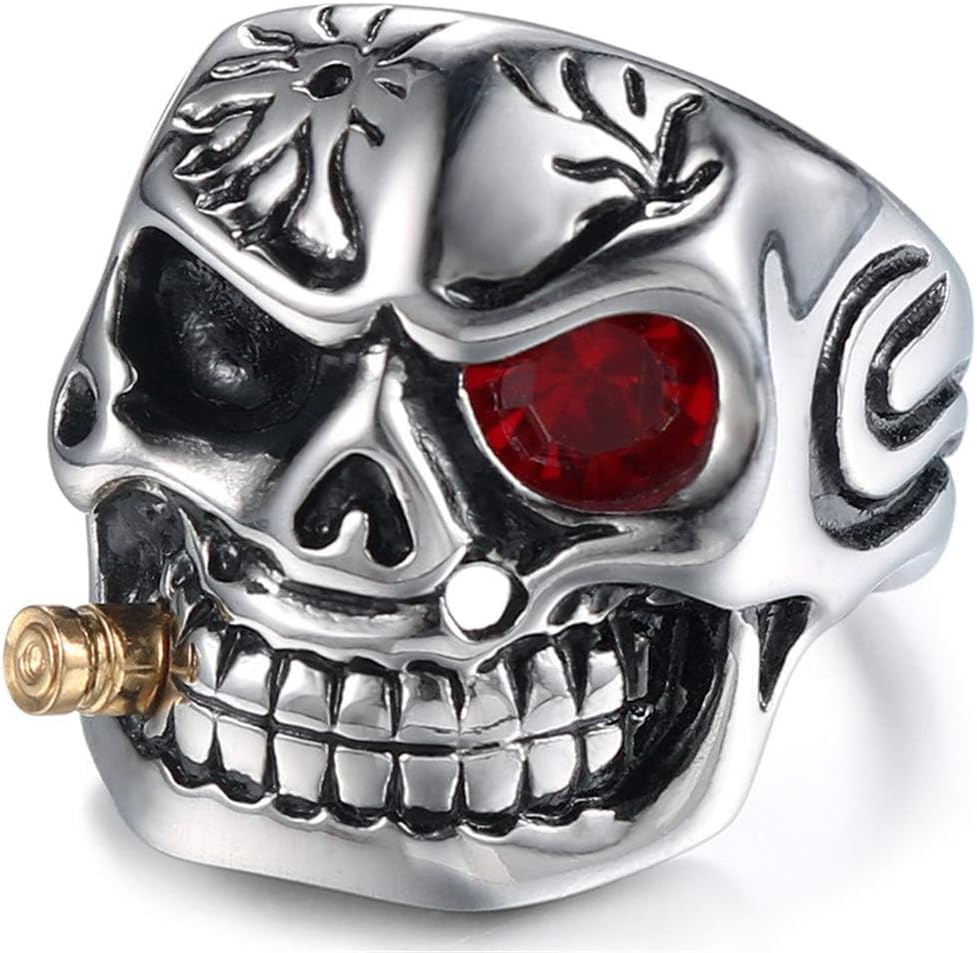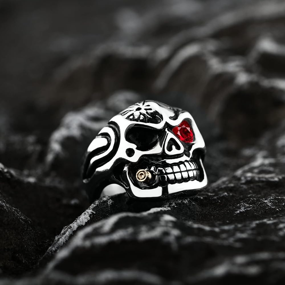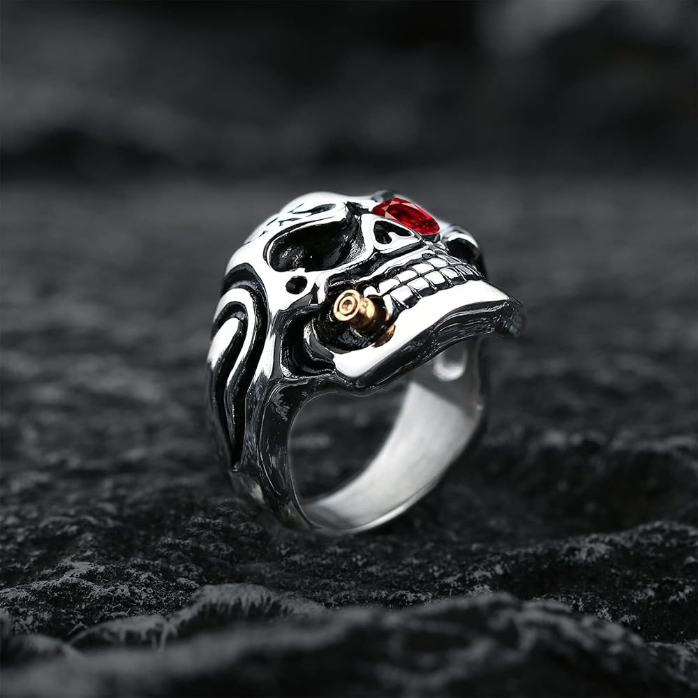 Skull Smoking Bullet Ring for Men Vintage Stainless Steel Gothic Skull Band Clear Eye Biker Cocktail Party Ring Jewelry Gift