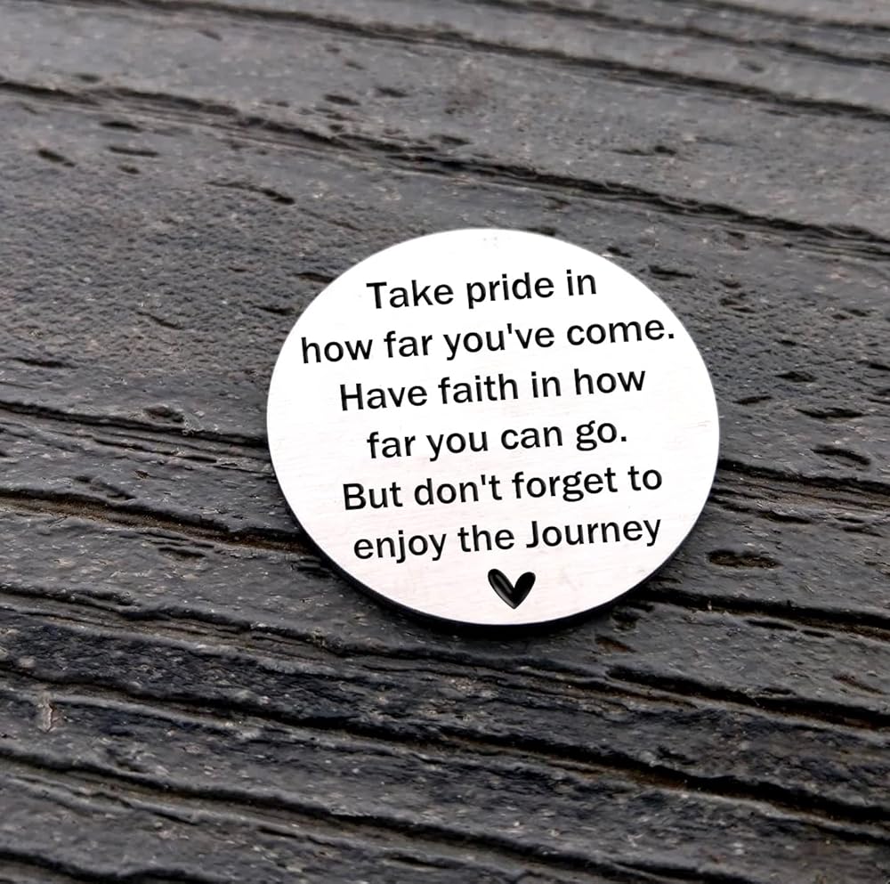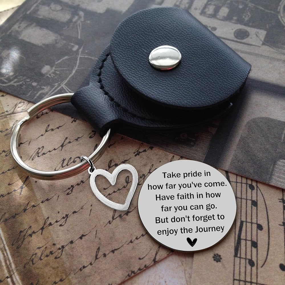 LRUIOMVE Take Pride Inspirational Pocket Hug Token with Leather Keychain, Stainless Steel Double Sided Coin Long Distance Relationship Gift for Daughter Son Birthday Graduation Gift