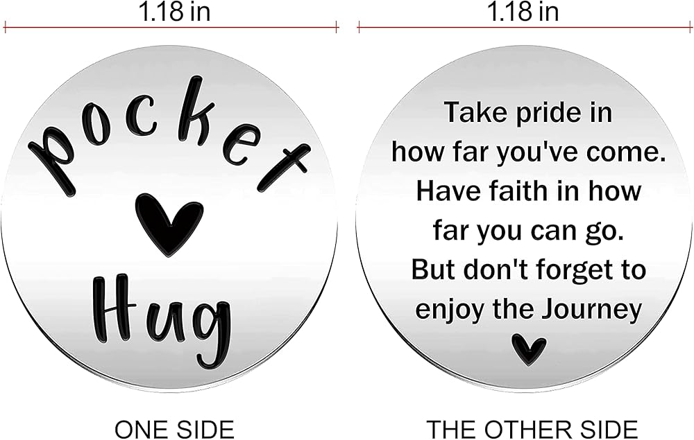 The token is 1.18" in width, the perfect size for a pocket, purse or handbag so it's there when you need it. Send a virtual hug to a loved one with a little keepsake token.