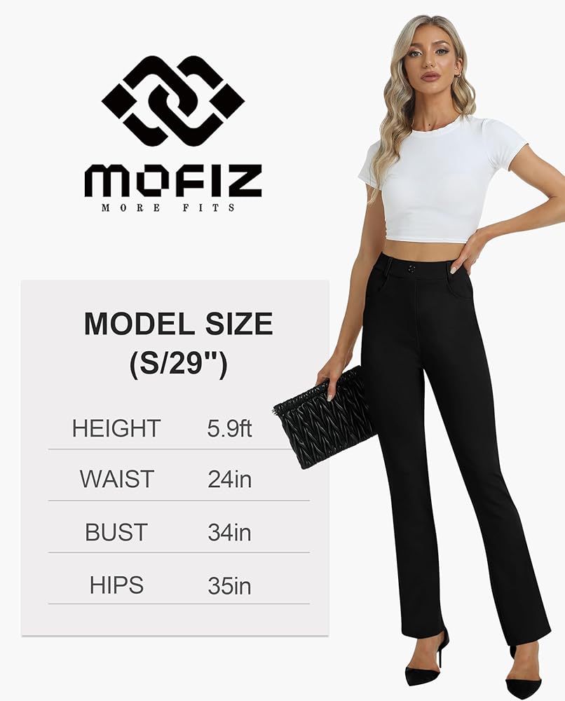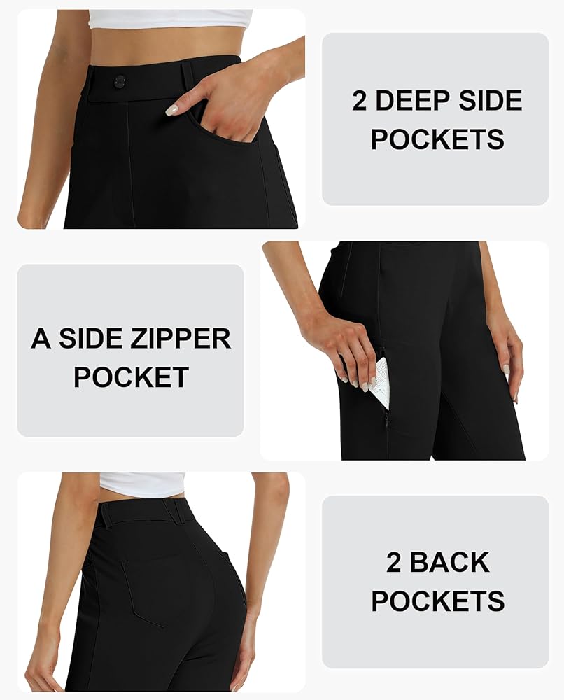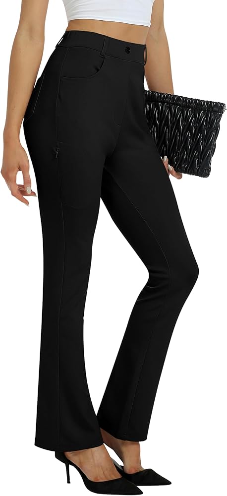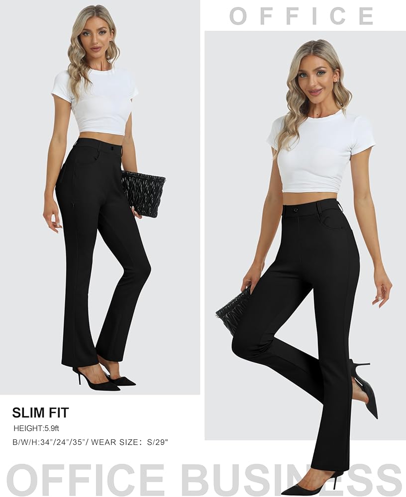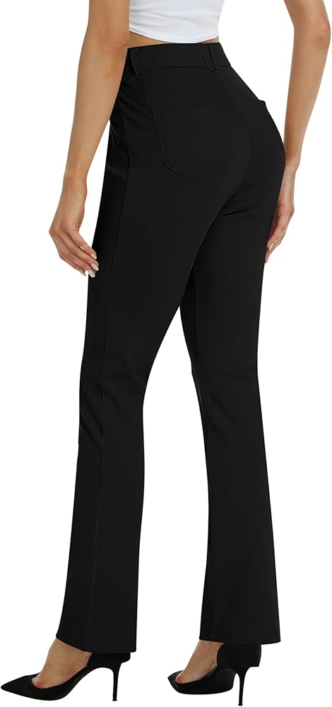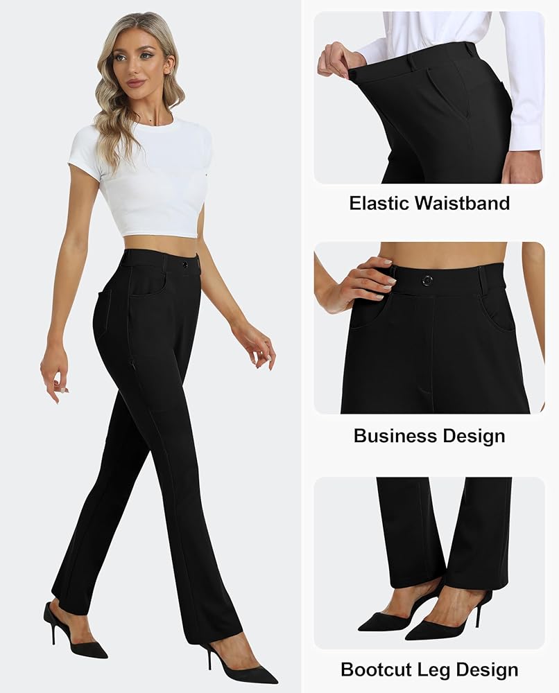 [Comfy Material]: Women's work slacks pants are made of 63%rayon, 32%Nylon, 5%Spandex, Non-see-through, stretch, moisture-wicking, soft, skin-friendly, no pilling. These bootcut dress slacks are a solid choice for office wear, casual wear, and daily wear. soft material is professional for work and comfortable all day.