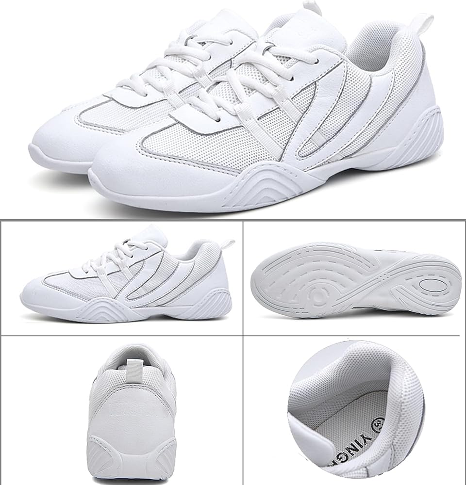 WUIWUIYU Boys Girls White Cheer Shoes Lace Up School Cheerleading Competition Dance Sports Sneakers Shoe