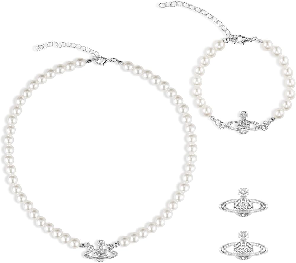 [Material]: Faux pearls+ Alloy, Saturn Pendant Be Full with Rhinestone