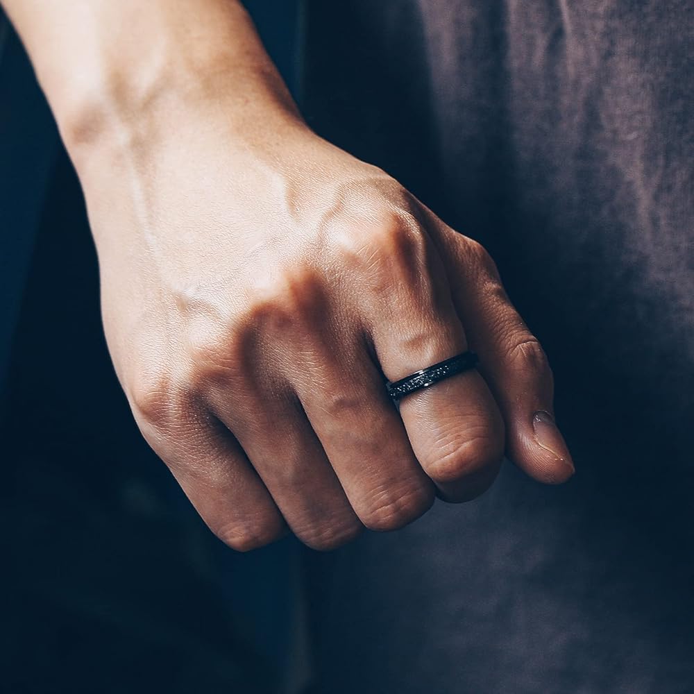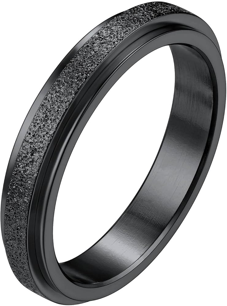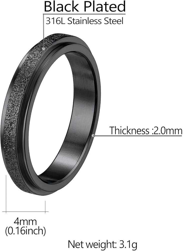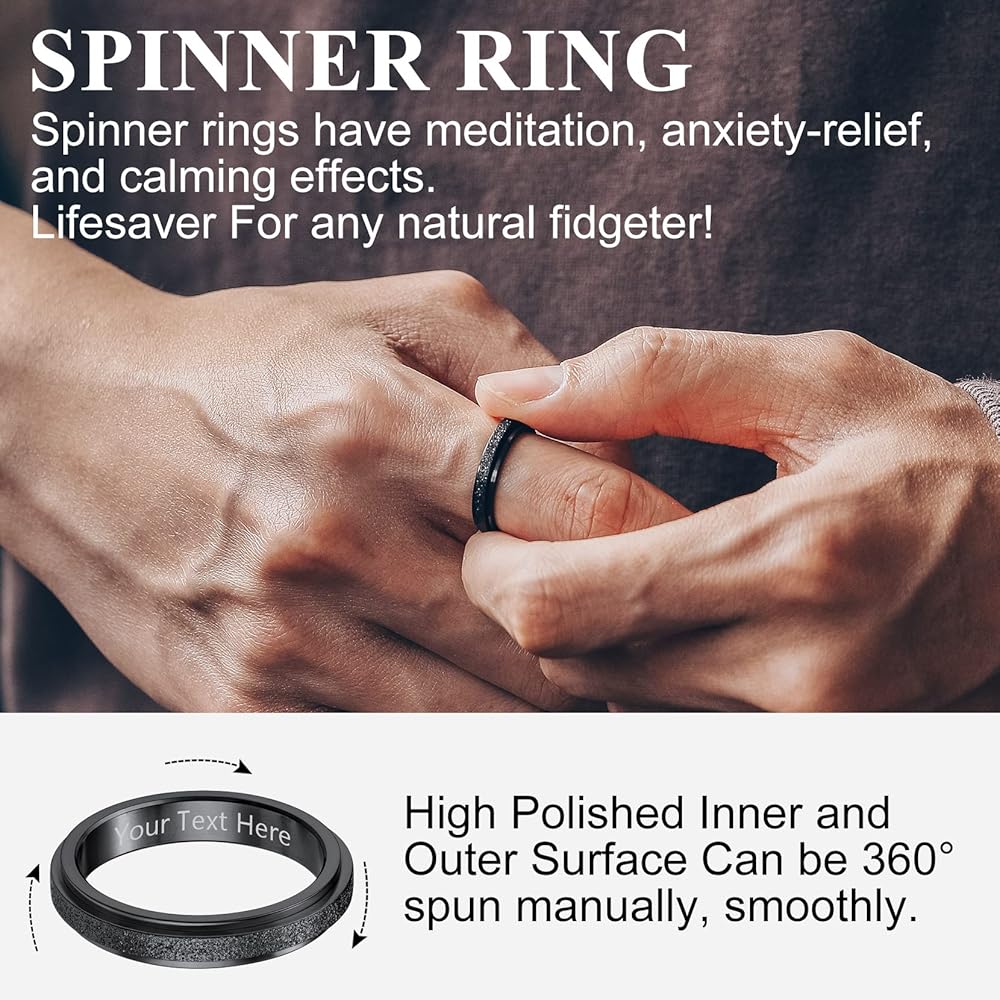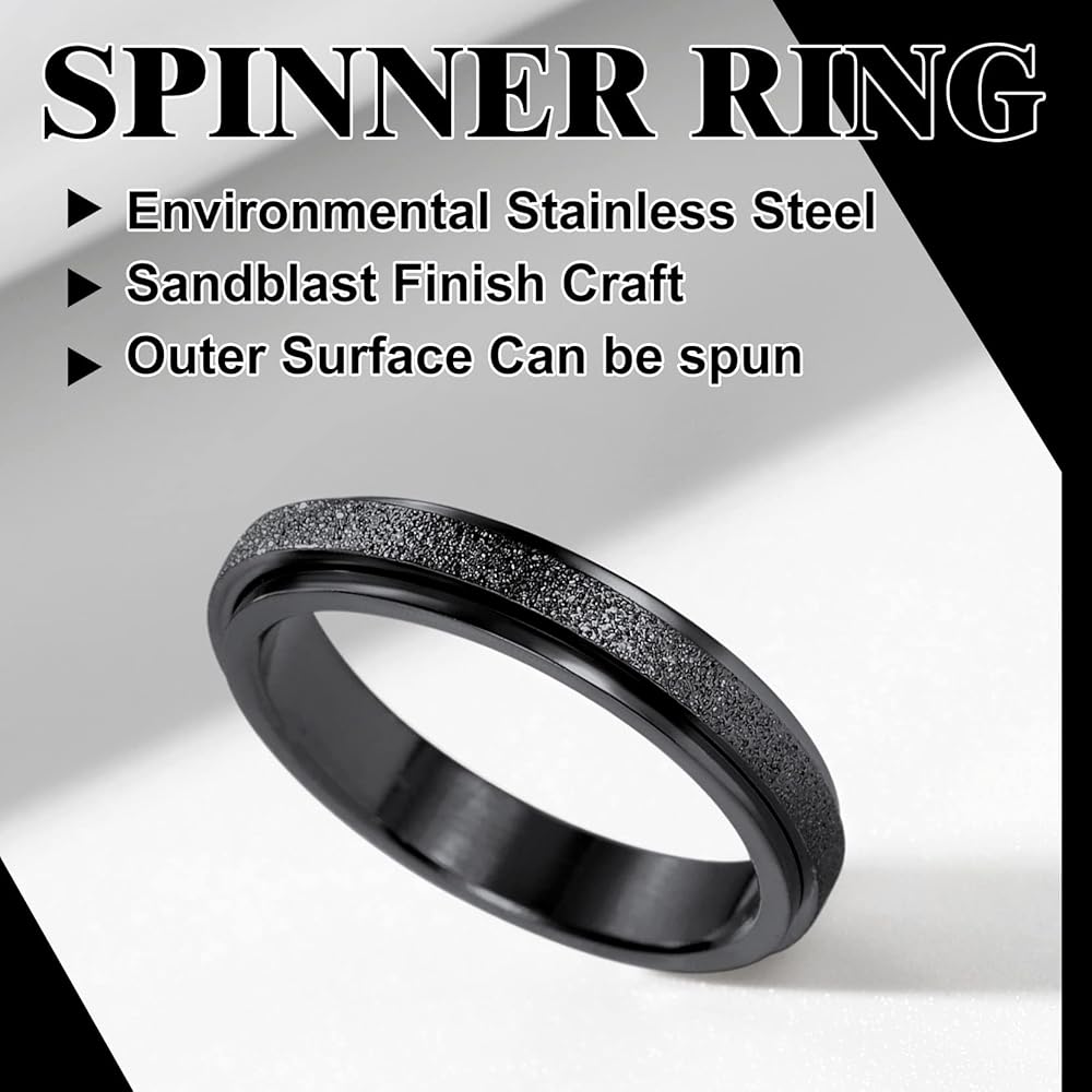 🔸Design: Sandblast finish band ring for men women, This pretty spinner ring features an inner band locked in the main band that can be spun manually, smoothly.