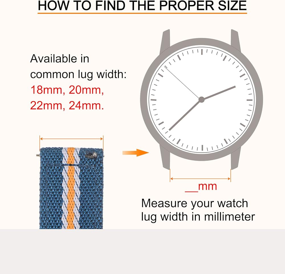 Note - Our canvas watch straps are available in various colors and sizes, so you can choose the one that matches your fashion taste. Please confirm the size before ordering, make sure the strap you choose matches your watch lug width.
