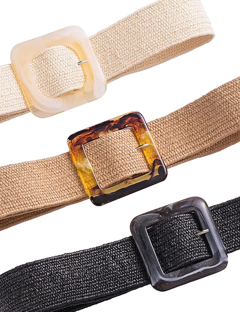 FAN&LOUIS Women's Elastic Straw Woven Stretch Waist Belt for Dresses Jeans Pants