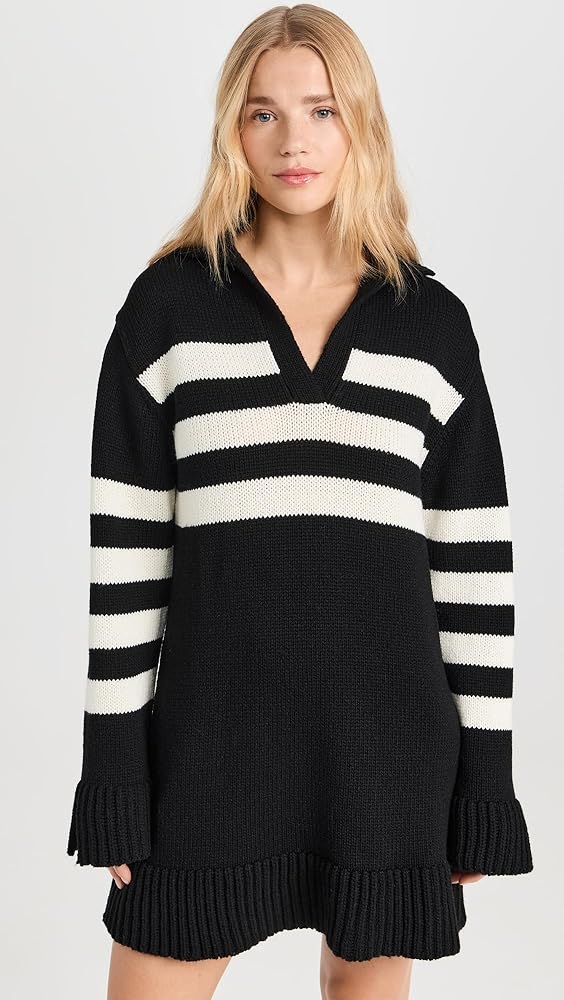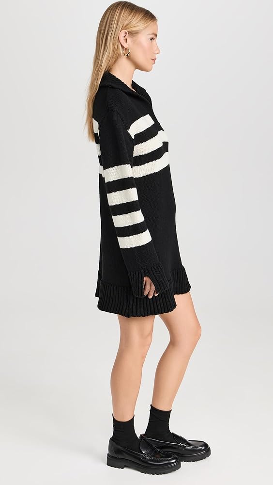 - Runs true to size. , Mini dress has an oversized silhouette and dropped shoulders. Sleeves run slightly long. Knit fabric has a cozy hand.