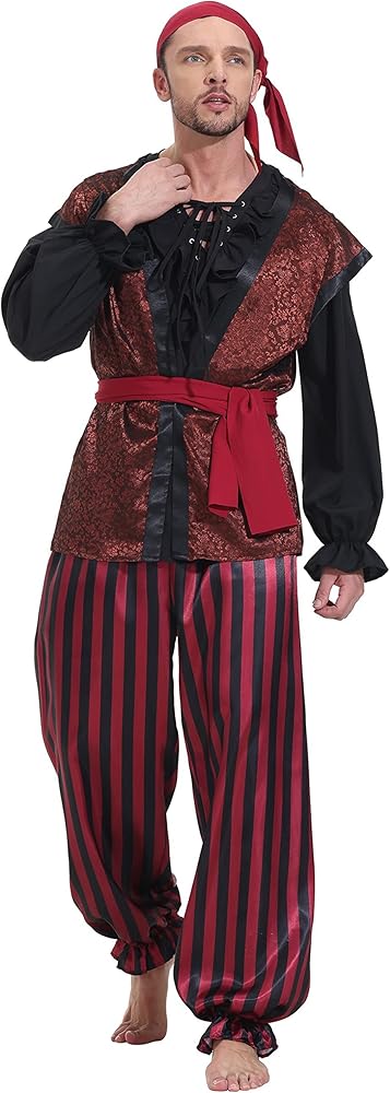Pirate Costumes for Adults Occasion:Perfect for Halloween Dress Up Parties, Pirate Costume, the Neverland Pirates Costume,Animal Theme Party, Buccaneer Themed Parties, Pirate Role Playing,Theater Plays, Pretend Play, Masquerade Ball, Outdoor Activity, Ocean Themed party, Activity, Everyday Play and More,it's a great gift for Special party,Birthday party,Halloween,Thanksgiving Day, Christmas and Carnival Cosplay,also perfect for daily wear.