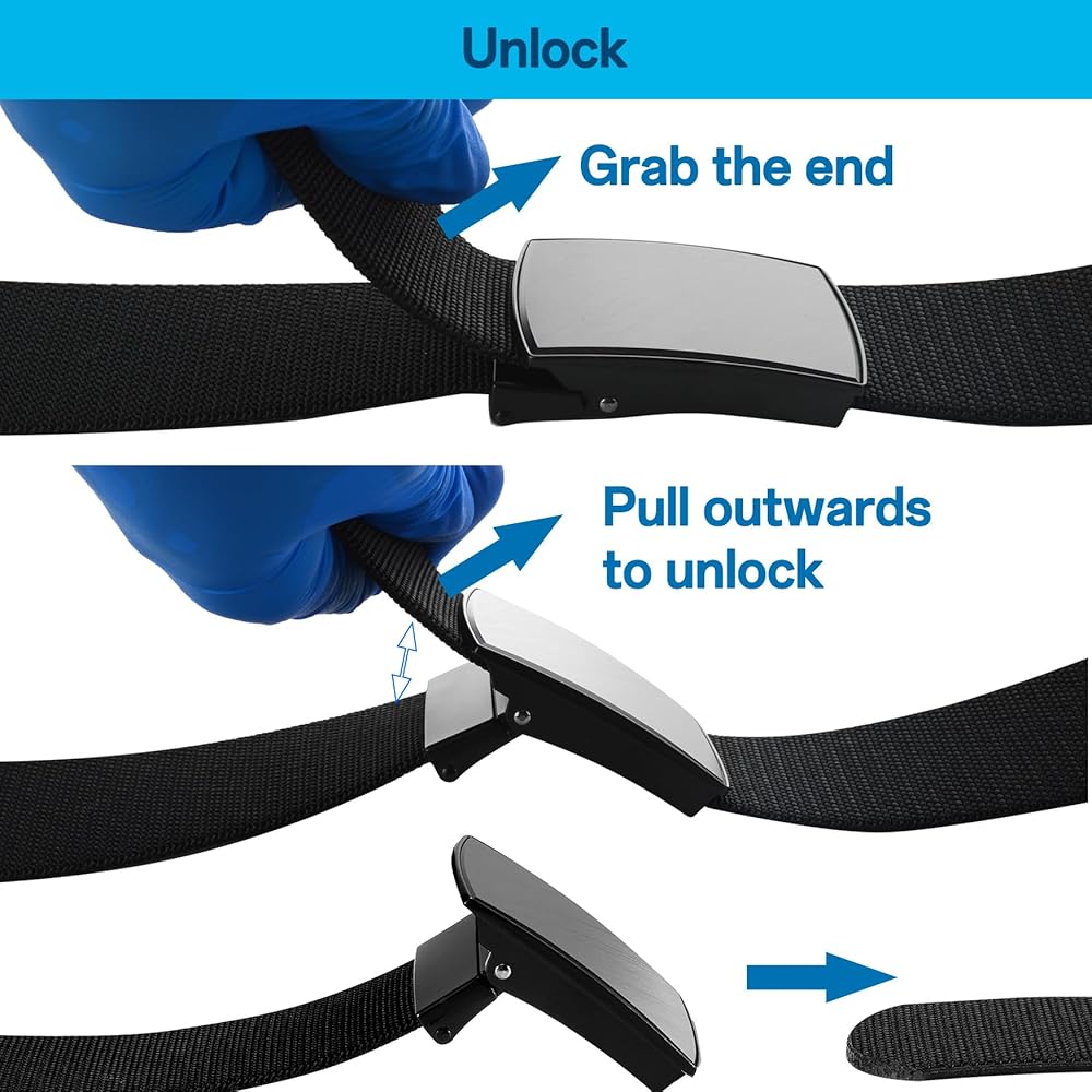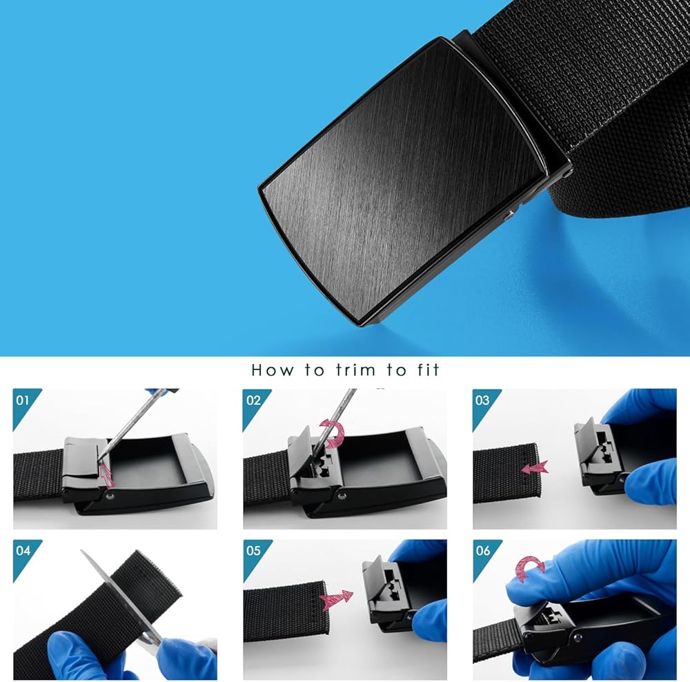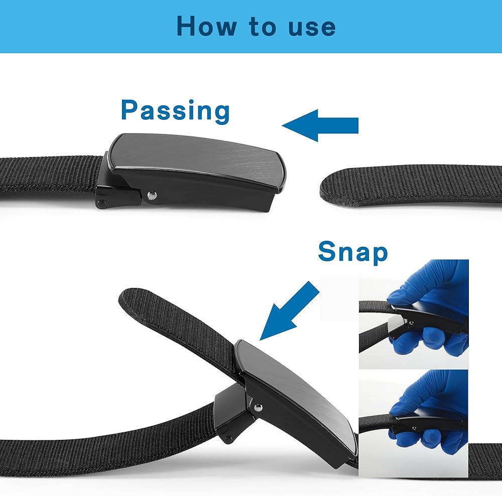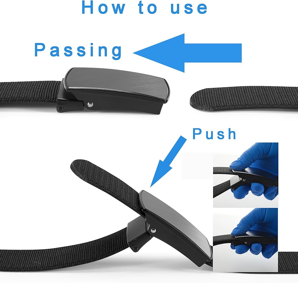 Non-Hole Design with Adjustable Waist Size: Unlike traditional belts with fixed holes, this belt features a non-hole design. The belt passes through the buckle, allowing you to adjust it to your desired waist size at will. This customization feature ensures a good fit for each individual.