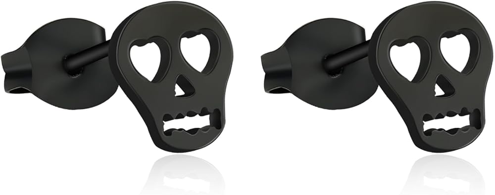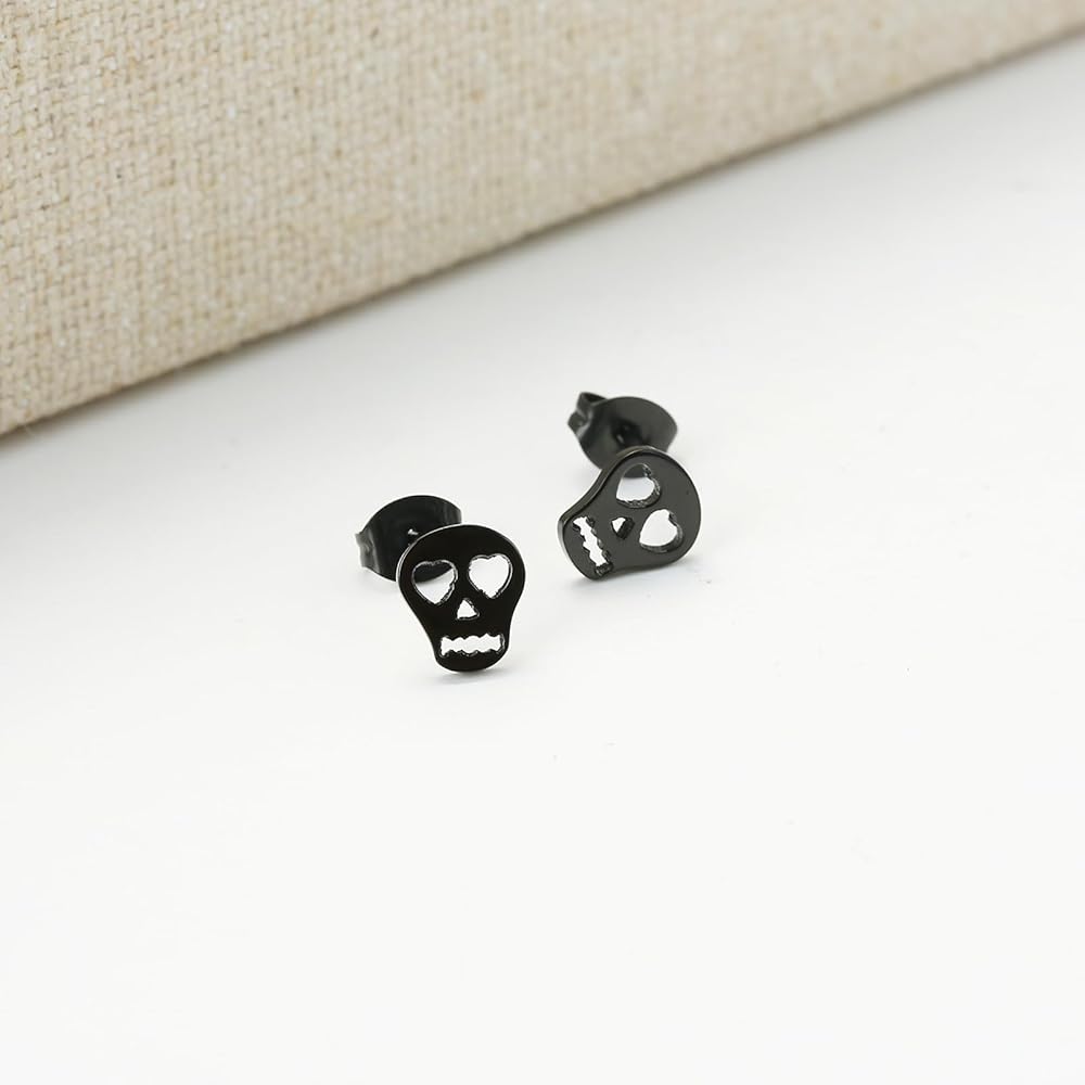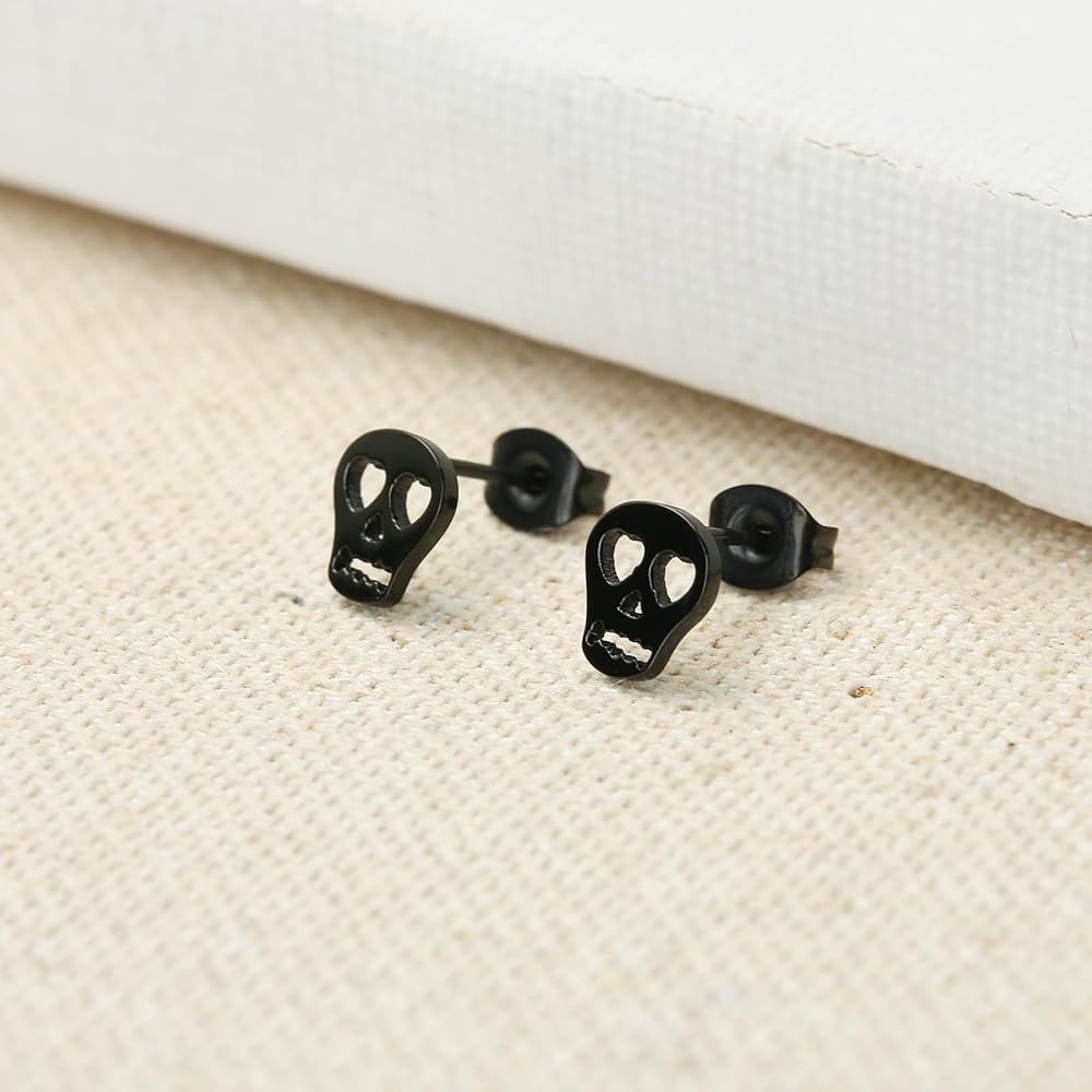 TGNEL Titanium Gothic Skull/Bat Earrings - Hypoallergenic Halloween Stud Earrings for Men & Women - Silver/Black